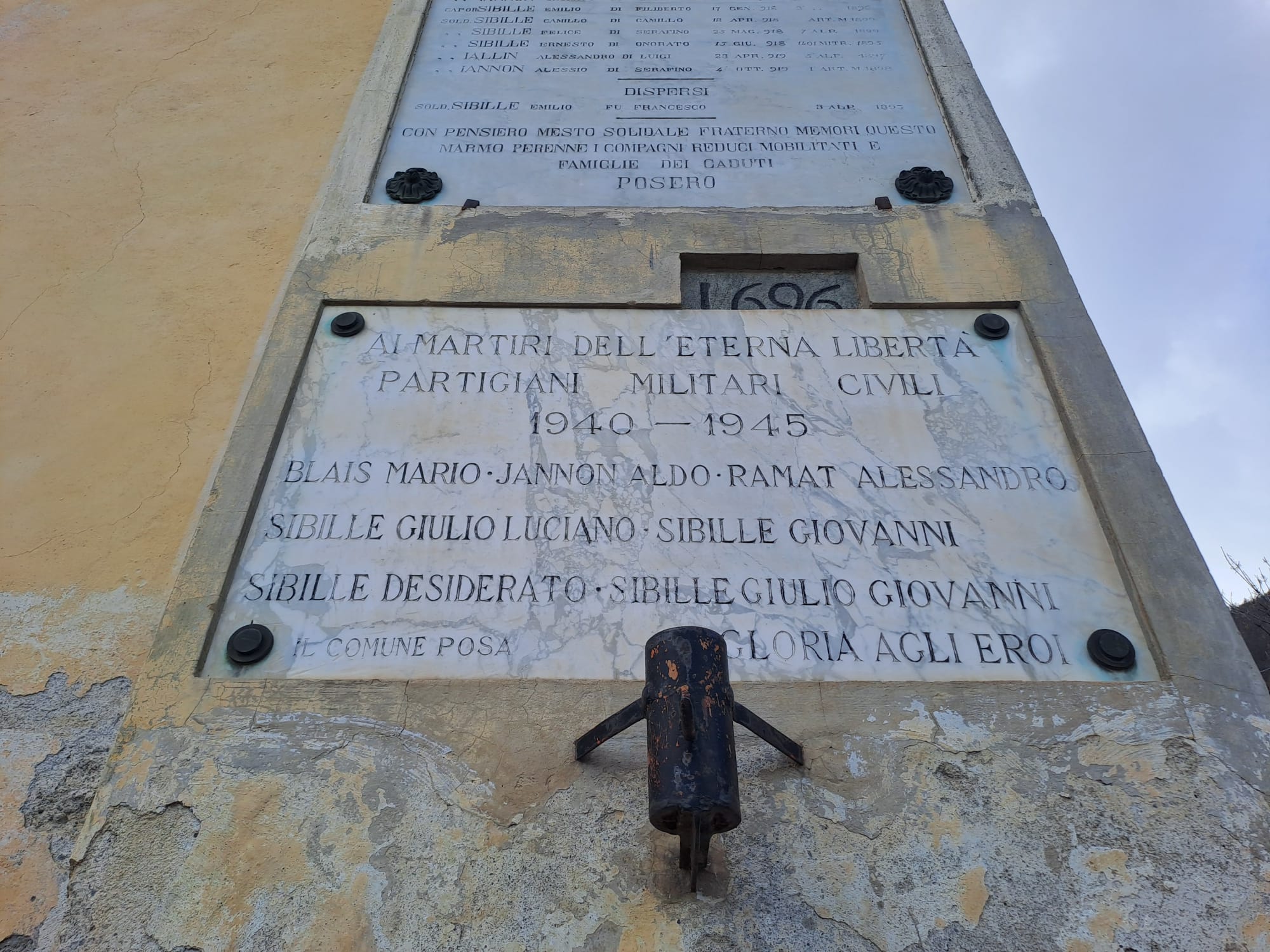 ai martiri dell'eterna libertà partigiani militari civili 1940-1945 BLAIS MARIO JANNON ALDO RAMAT ALESSANDRO SIBILLE GIULIO LUCIANO SIBILLE GIOVANNI SIBILLE DESIDERATO SIBILLE GIULIO GIOVANNI il comune posa gloria agli eroi