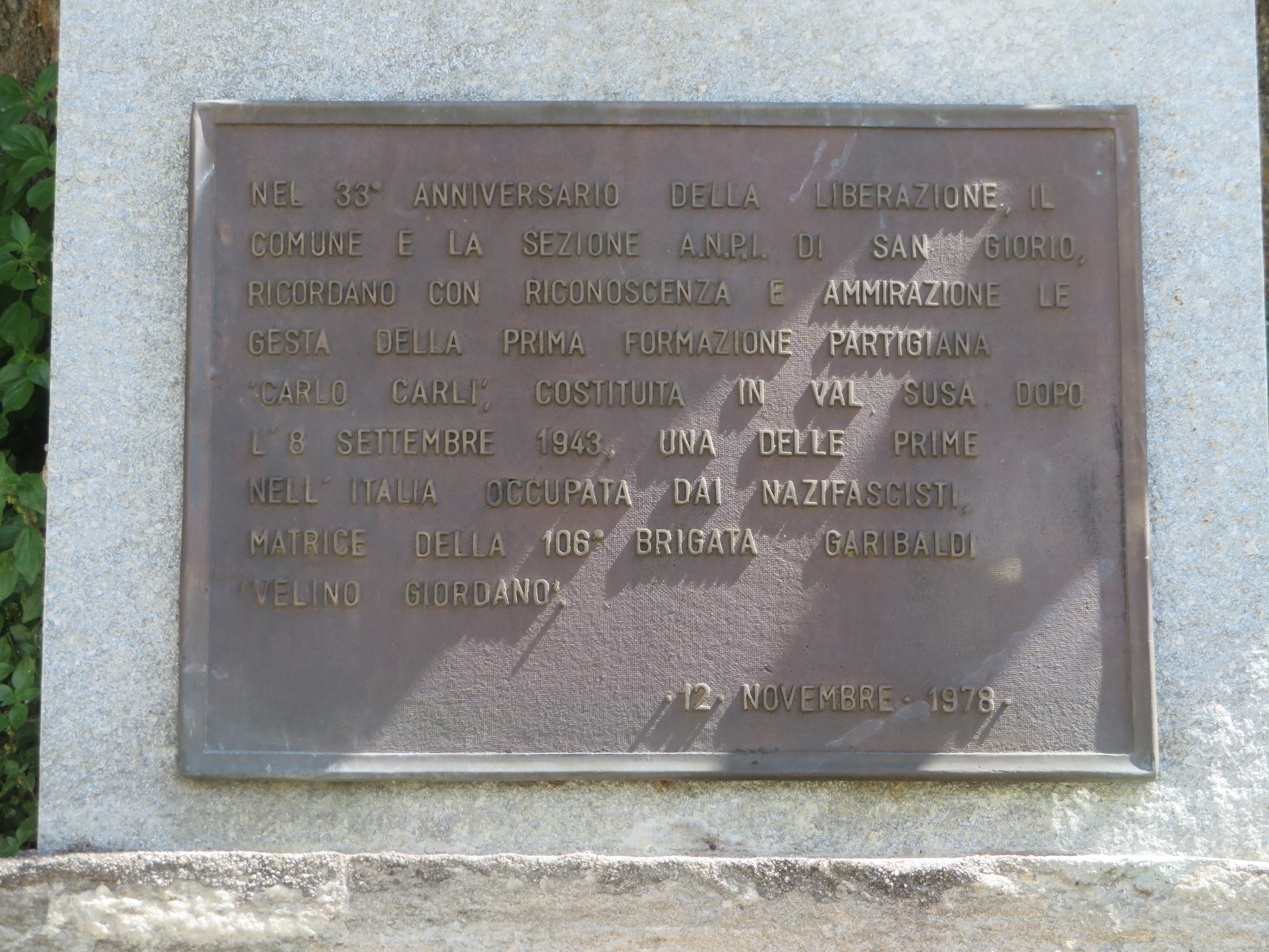 Lapide per i caduti della guerra di liberazione 15m — San Giorio di Susa (TO) Monumento del Parco della rimembranza 540m — San Giorio di Susa (TO) Lapide della 106° Brigata Giordano Velino 980m — San Giorio di Susa (TO) Cippo a Savoldelli, Fassio e Lavezzi 1.3Km — Bruzolo (TO) Lapide a Bianco, Novara e Panfietti 1.5Km — Chianocco (TO) Cippo a Fontan e Rossero 1.8Km — Bruzolo (TO) Cippo agli Ambrosia 1.8Km — Bruzolo (TO) Targhe per il giuramento 1.8Km — San Giorio di Susa (TO) Cippo a Borgis e Dolino 1.9Km — Bruzolo (TO) Lapide in ricordo del giuramento 1.9Km — San Giorio di Susa (TO)