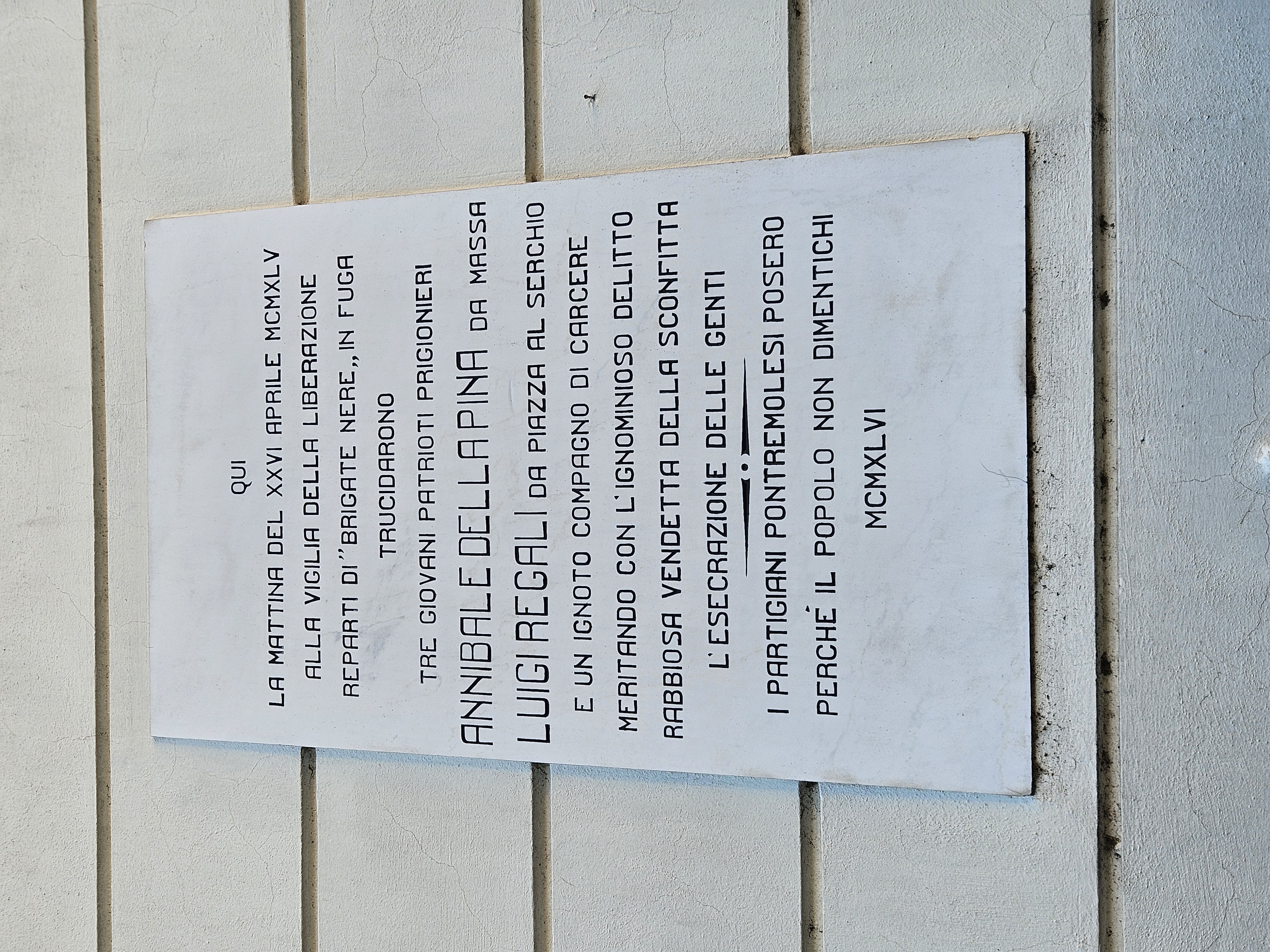 Lapide alla Divisione "Cisa" 55m — Pontremoli (MS) Busto a Lett 55m — Pontremoli (MS) Lapide ai sacerdoti caduti 190m — Pontremoli (MS) Lapide del ponte Battisti 210m — Pontremoli (MS) Monumento ai caduti della Resistenza 360m — Pontremoli (MS) Lapide ai Martiri di Ponticello 1.5Km — Pontremoli (MS) Lapide a Vecchi eToma 1.7Km — Pontremoli (MS) Monumento alla Resistenza 1.8Km — Pontremoli (MS) Lapide ai caduti di Vignola 2.5Km — Pontremoli (MS) Lapide a Fiondo, Polacchini ed altri 2.7Km — Pontremoli (MS)