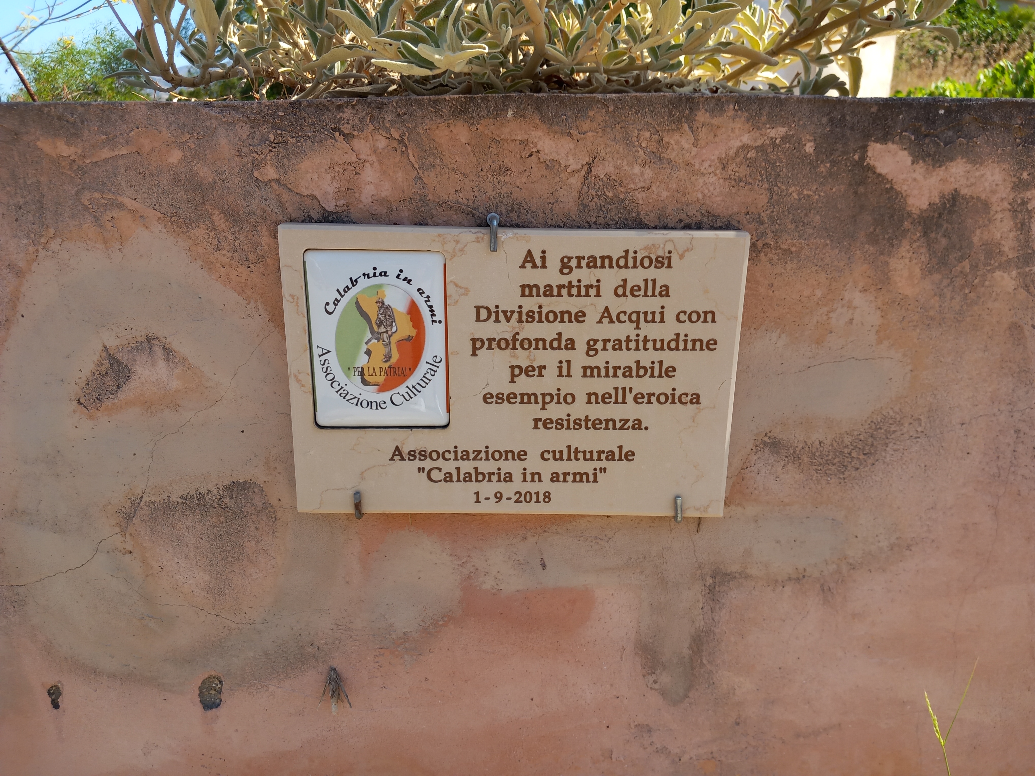 Sacrario dei caduti di Cefalonia 310m — Grecia Monumento della Resistenza di Berat 284.3Km — Albania Lapide ai Nicoletta 306.5Km — Crotone (KR) Stele del partigiano 384.5Km — Polistena (RC) Lapide del ventennale 392.7Km — Locorotondo (BA) Lapide a Di Vagno 392.7Km — Locorotondo (BA) Lapide a Repice 402.4Km — Tropea (VV) Sepolcro di Castriota 409.7Km — Castrovillari (CS) Lapide a Di Vagno 426.5Km — Mola di Bari (BA) Lapide per la liberazione di Matera 431.6Km — Matera (MT)