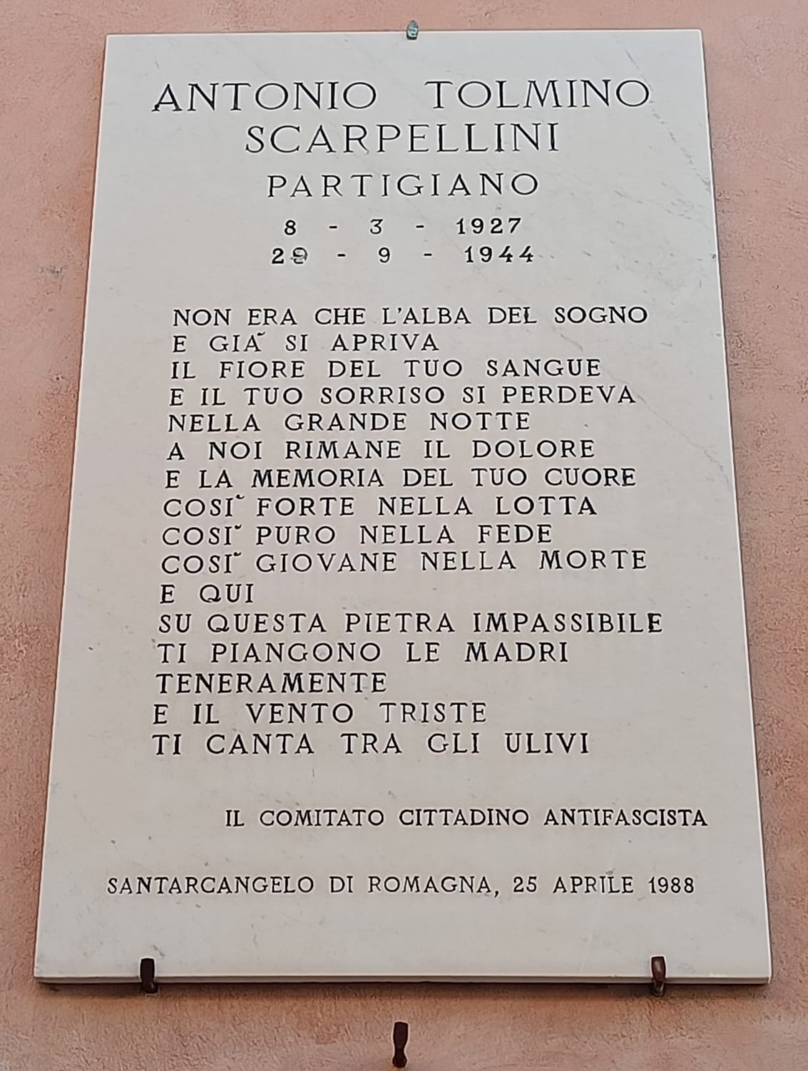 Lapide all'80° della Liberazione 9.6Km — Bellaria-Igea Marina (RN) Lapide ai Caduti della guerra di Liberazione 9.6Km — Bellaria-Igea Marina (RN) Lapide ai Deportati 9.6Km — Bellaria-Igea Marina (RN) Lapide per la cattura dei Tre Martiri 9.8Km — Rimini (RN) Lapide al decennale della Liberazione 9.8Km — Rimini (RN) Lapide ai soldati alleati e ai partigiani 9.9Km — Rimini (RN) Lapide per la Medaglia d'Oro al Valor Civile 9.9Km — Rimini (RN) Lapide a Battarra e Chesi 10Km — Rimini (RN) Lapide per il bombardamento del 28 dicembre 1943 10Km — Rimini (RN) Lapide ai Caduti per la Libertà 10.1Km — Rimini (RN)