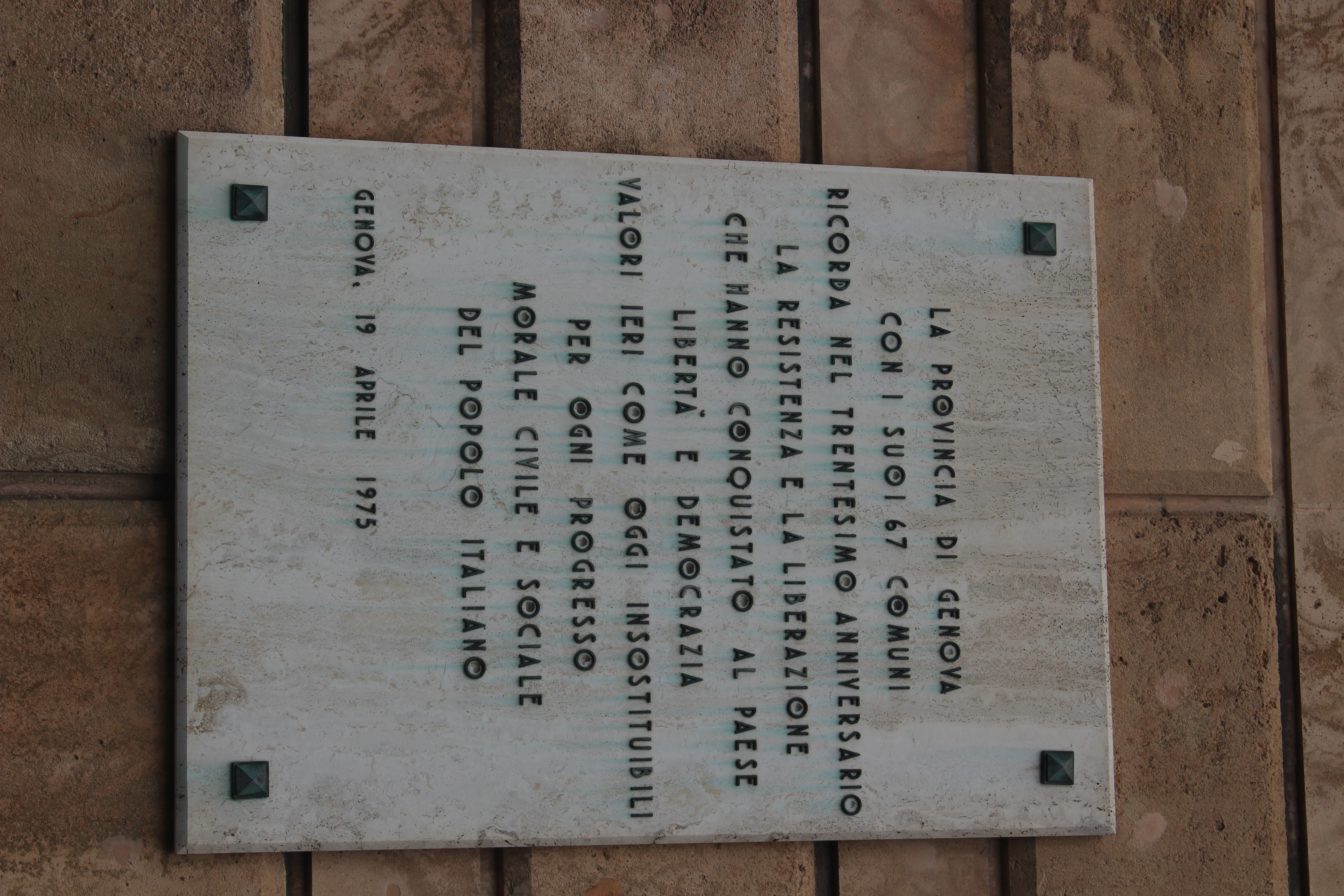 la provincia di genova con i suoi 67 comuni ricorda nel trentesimo anniversario la resistenza e la liberazione che hanno conquistato al paese libertà e democrazia valori ieri come oggi insostituibili per ogni progresso morale civile e sociale del popolo italiano genova, 19 aprile 1975