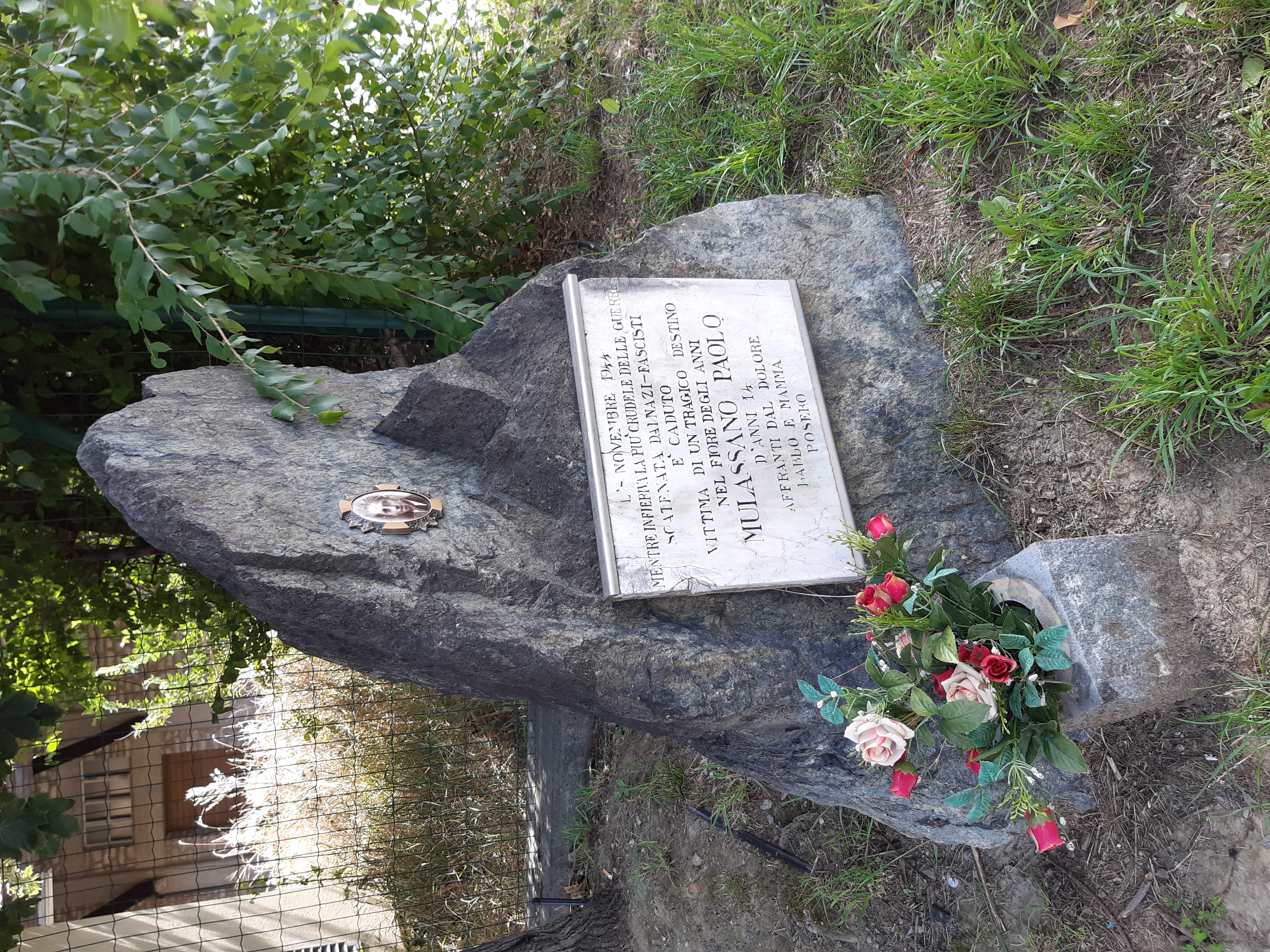 l'8 novembre 1944 mentre infieriva la più crudele delle guerre scatenata dai nazi-fascisti è caduto vittima di un tragico destino nel fiore degli anni MULASSANO PAOLO d'anni 14 affranti dal dolore babbo e mamma posero