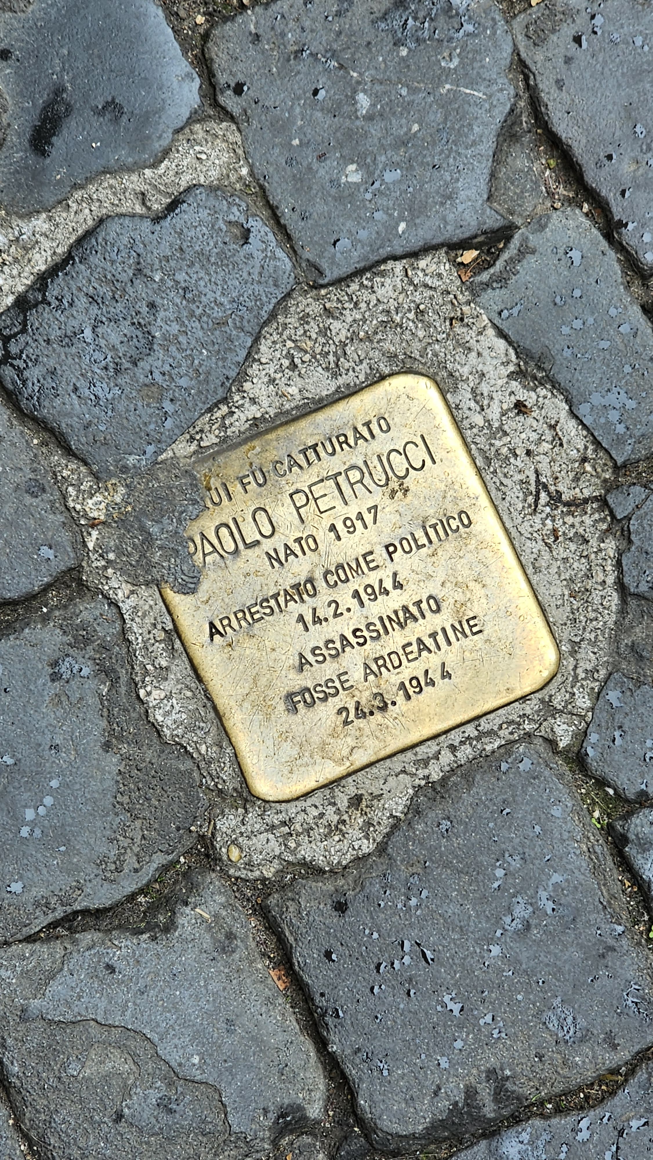 Lapide ai caduti partigiani di Bari Bari (BA) Monumento ai martiri delle Fosse Ardeatine Terlizzi (BA) Lapide alle Medaglie d'Oro di Reggio Emilia Reggio nell'Emilia (RE) Lapide a Fenulli Reggio nell'Emilia (RE) Targa a Fabrini Zagarolo (RM) Dedica a Butera Riesi (CL) Lapide a Camisotti e Tasca Monza (MB) Cippo ai caduti Brusnengo (BI) Lapide ai caduti Brusnengo (BI) Lapide a Haipel e Pepicelli Roma (RM) Lapide ad Agnini Roma (RM) Lapidi di Subiaco Subiaco (RM) Lapide a Imperiali Palombara Sabina (RM) Lapide a Fantacone Roma (RM) Targa a Villoresi Roma (RM) Lapide a Barbieri Roma (RM) Lapide ai 14 martiri di Monte Sacro Roma (RM) Pietre d'inciampo alle famiglie Di Consiglio-Vivanti e Spizzichino-Anav Roma (RM) Lapide a Mancini Roma (RM) Lapide a Chiesa Roma (RM) Laide a Bordoni e Salemme Roma (RM) Lapide a Govoni Ferrara (FE) Lapide dei caduti della cooperativa Termini Roma (RM) Lapide ai caduti del Partito d'Azione Roma (RM) Monumento alle Medaglie al valor militare Livorno (LI) Lapide a Gelsomini Roma (RM) Lapide a Perpetua Roma (RM) Pietre d'inciampo a Di Porto e Caviglia Roma (RM) Mausoleo delle Fosse Ardeatine Roma (RM) Fosse Ardeatine Roma (RM) Lapidi del Mausoleo delle Fosse Ardeatine Roma (RM) Murale a Mancini Roma (RM) Lapide a Jaforte Roma (RM) Lapide a Fiorentini Roma (RM) Lapide della sinagoga Roma (RM) Pietra d'inciampo a Duranti Roma (RM) Lapide a Ottaviano Roma (RM) Lapide a Stame Roma (RM) Lapide ai caduti del liceo Galvani Bologna (BO) Lapide a Lo Presti Roma (RM) Lapide a Bucciano Roma (RM) Lapide a Fano Roma (RM) Lapide ai martiri dell'8° zona Roma (RM) Lapide a Stame Roma (RM) Lapide a Avolio Roma (RM) Lapide a Simoni Roma (RM) Monumento ai caduti per la libertà di Centocelle Roma (RM) Lapide ai caduti per la libertà di Centocelle Roma (RM) Lapide ai caduti dell'Atac nella Guerra di Liberazione Roma (RM) Targa ad Agnini Roma (RM) Lapide ai caduti per la Libertà di Tor Pignattara Roma (RM) Pietre d'inciampo per gli operai del mobilificio Roma (RM) Lapide ad Astrologo Roma (RM) Lapide ai partigiani ebrei Roma (RM) Lapide a Casadei e Fantini Roma (RM) Lapide ai postelegrafonici caduti per la Libertà Roma (RM) Lapide a Pisino Roma (RM) Lapide ai rastrellati di via Rasella Roma (RM) Lapide a Fontana Roma (RM) Sacrario dei caduti per la Libertà di Mirandola Mirandola (MO) Lapide a Gelsomini Roma (RM) Lapide a Giglio Roma (RM) Pietra d'inciampo a Giglio Roma (RM) Lapide a Bernabei Montepulciano (SI) Pietra d'inciampo a Orlandi Posti Roma (RM) Lapide a Giustiniani e Pitrelli Roma (RM) Pietre d'inciampo alle famiglie Di Consiglio, Di Tivoli, Di Castro e Moscato Roma (RM) Lapide ad Azzarita Venezia (VE) Lapide a Zaccagnini Roma (RM) Pietre d'inciampo alla famiglia Sermoneta - Zarfati e a Zaccagnini Roma (RM) Lapide a Grani Roma (RM) Lapide a Galafati Roma (RM) Lapide ai caduti dei rioni Ponte, Parione, Regola e Campitelli Roma (RM) Lapide ai partigiani di Trastevere Roma (RM) Lapidi ai Partigiani Copparesi Caduti Copparo (FE) Lapidi ai Caduti di Tamara Copparo (FE) Fontana Monumentale Copparo (FE) Lapide a Celani Roma (RM) Lapide a Micheli Roma (RM) Lapide a Pappagallo Roma (RM)