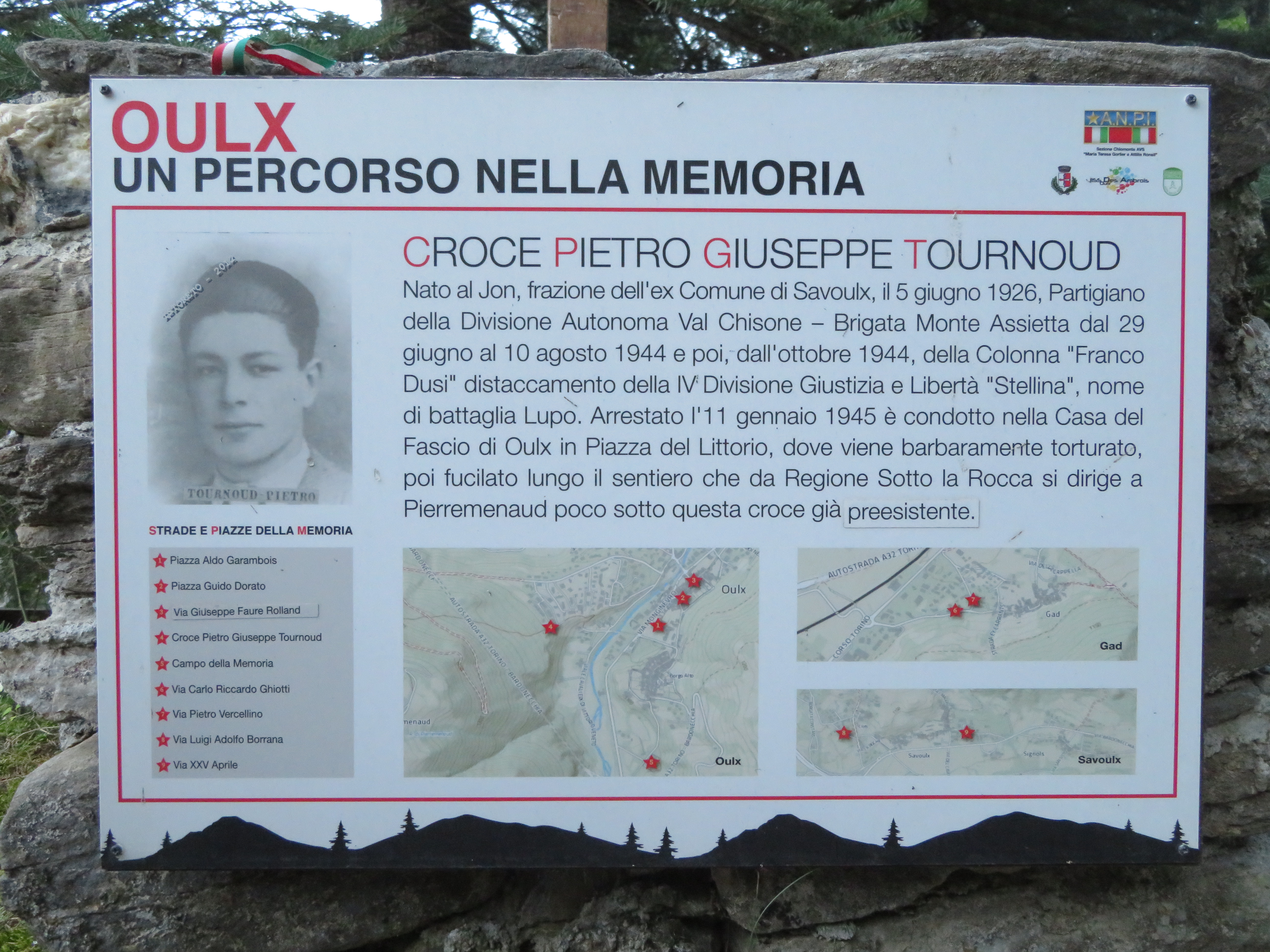 Monumento ai partigiani caduti in Alta Valle Susa 720m — Oulx (TO) Lapide a Borrana e Tournoud 3Km — Oulx (TO) Monumento a Ghiotti 4.6Km — Oulx (TO) Monumento a Graziotti 9.7Km — Cesana Torinese (TO) Lapide a Rolle e Ventrella 10.7Km — Cesana Torinese (TO) Lapide per Morello 11.3Km — Exilles (TO) Lapide per Mout e Ronsil 12.4Km — Exilles (TO) Lapidi a Rech, Armas e Cherif 15.2Km — Chiomonte (TO) Lapidi ai caduti di Ramats 15.6Km — Chiomonte (TO) Monumento ai caduti di Chiomonte 15.8Km — Chiomonte (TO)