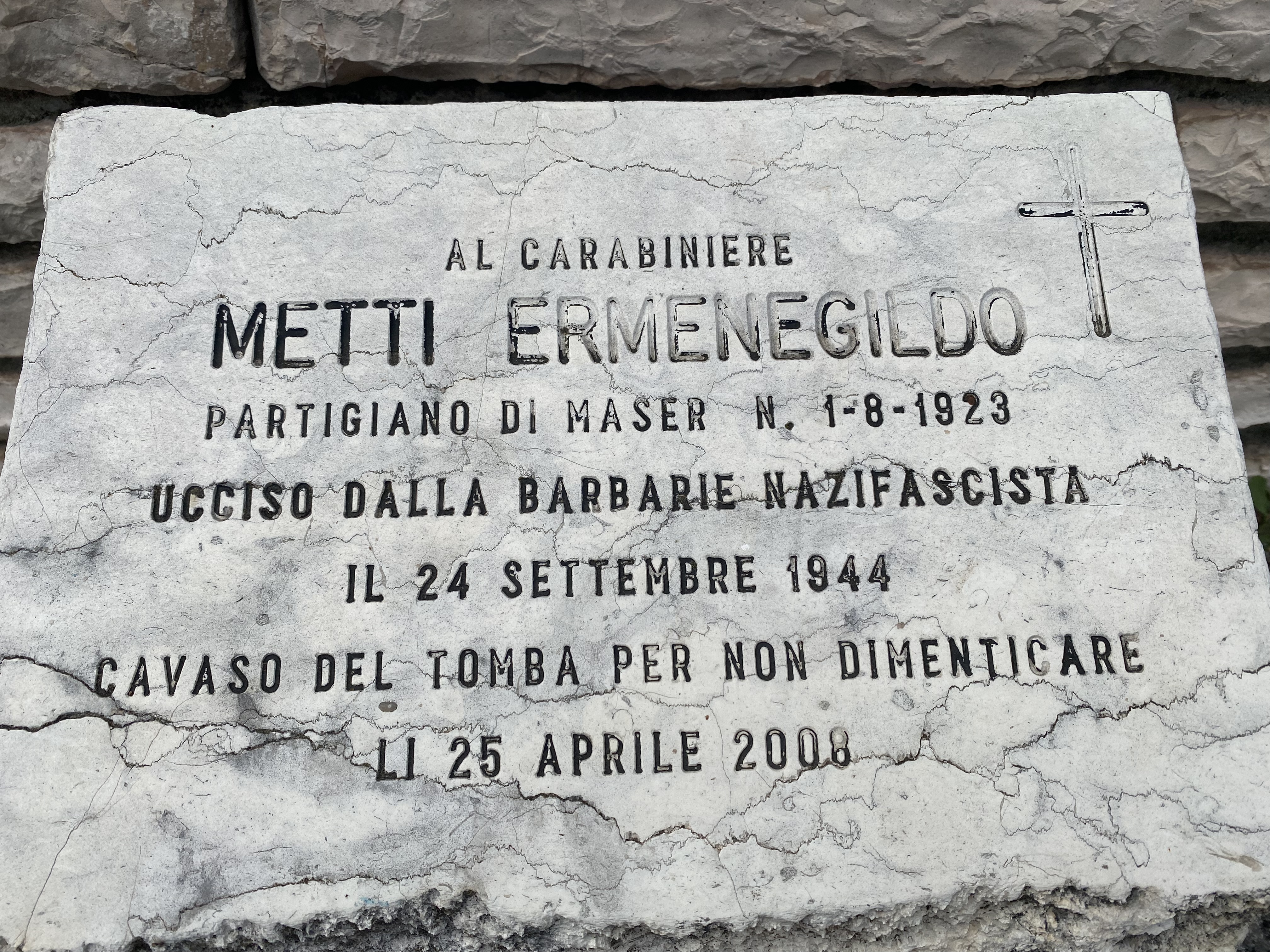Monumento al Partigiano e alla Resistenza 8.8Km — Pieve del Grappa (TV) Lapide a Bonaldo, Gardin e Follador 17.8Km — Giavera del Montello (TV) Cippo ad Agostini, Bussolaro e Fontana 22.9Km — Enego (VI) Lapide a Morandin 26Km — Susegana (TV) Cippo ai martiri coneglianesi 26.7Km — Nervesa della Battaglia (TV) Lapide alla Resistenza 26.8Km — Asiago (VI) Cippo a Lomedico 28.3Km — Villorba (TV) Lapide a Cenedese, Cuzziol e Donadon 28.4Km — Santa Lucia di Piave (TV) Lapide a Romagnoli e Passerelli 29Km — Conegliano (TV) Cippo a Morandin e Vorazoscvilj 29.3Km — Vittorio Veneto (TV)