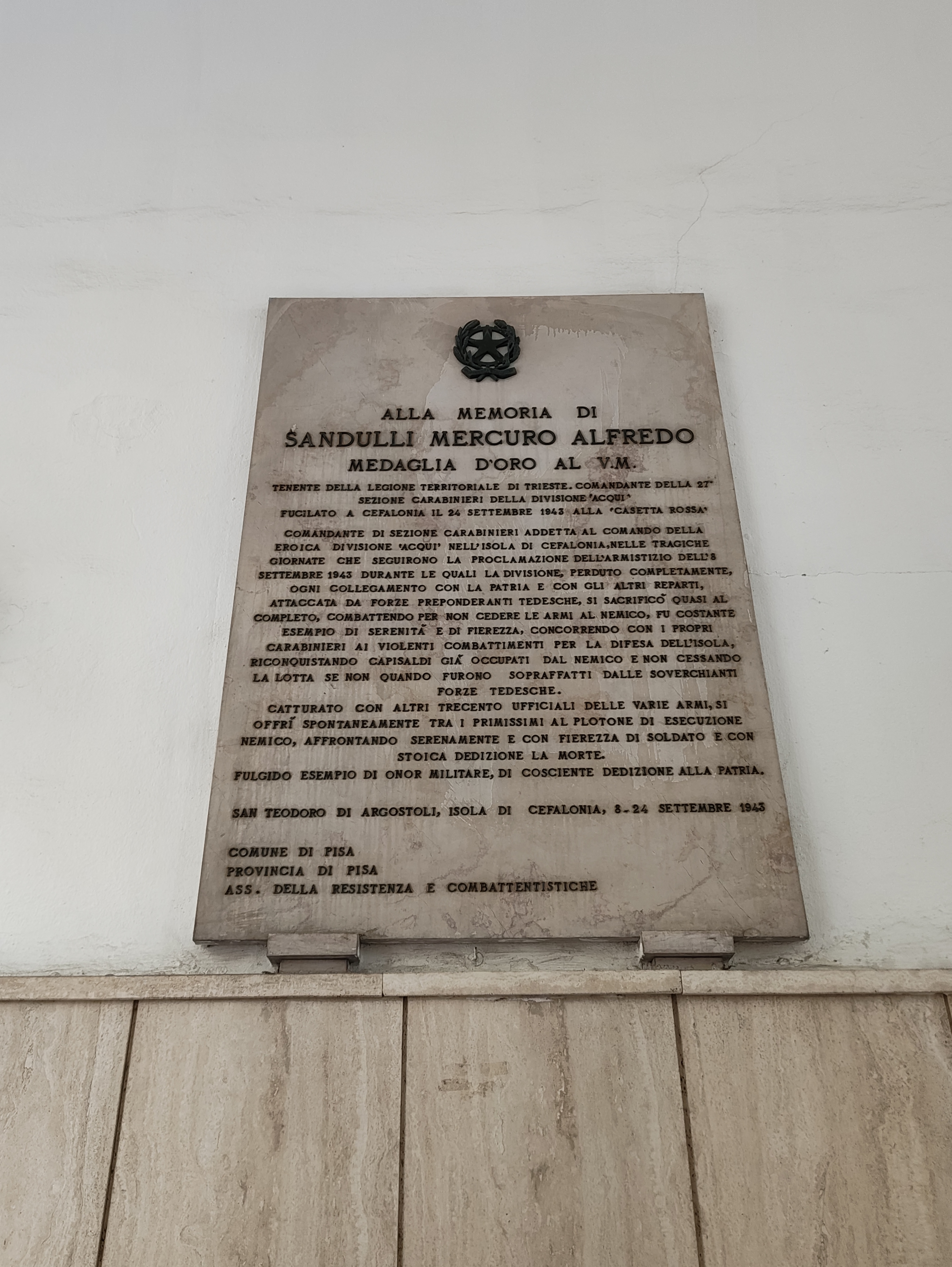 Lapide ad Arieti 170m — Pisa (PI) Lapide di casa Roques 180m — Pisa (PI) Lapide del municipio 250m — Pisa (PI) Lapide dei caduti della guerra di Liberazione 320m — Pisa (PI) Monumento ai caduti della Divisione Acqui 900m — Pisa (PI) Stele in memoria degli Internati 1.7Km — San Giuliano Terme (PI) Lapide dell'eccidio di San Biagio 3Km — Pisa (PI) Monumento dell'eccidio di San Biagio 3Km — Pisa (PI) Lapide ai Caduti di Ghezzano 3.1Km — San Giuliano Terme (PI) Lapide ai Caduti di Gello 4.9Km — San Giuliano Terme (PI)