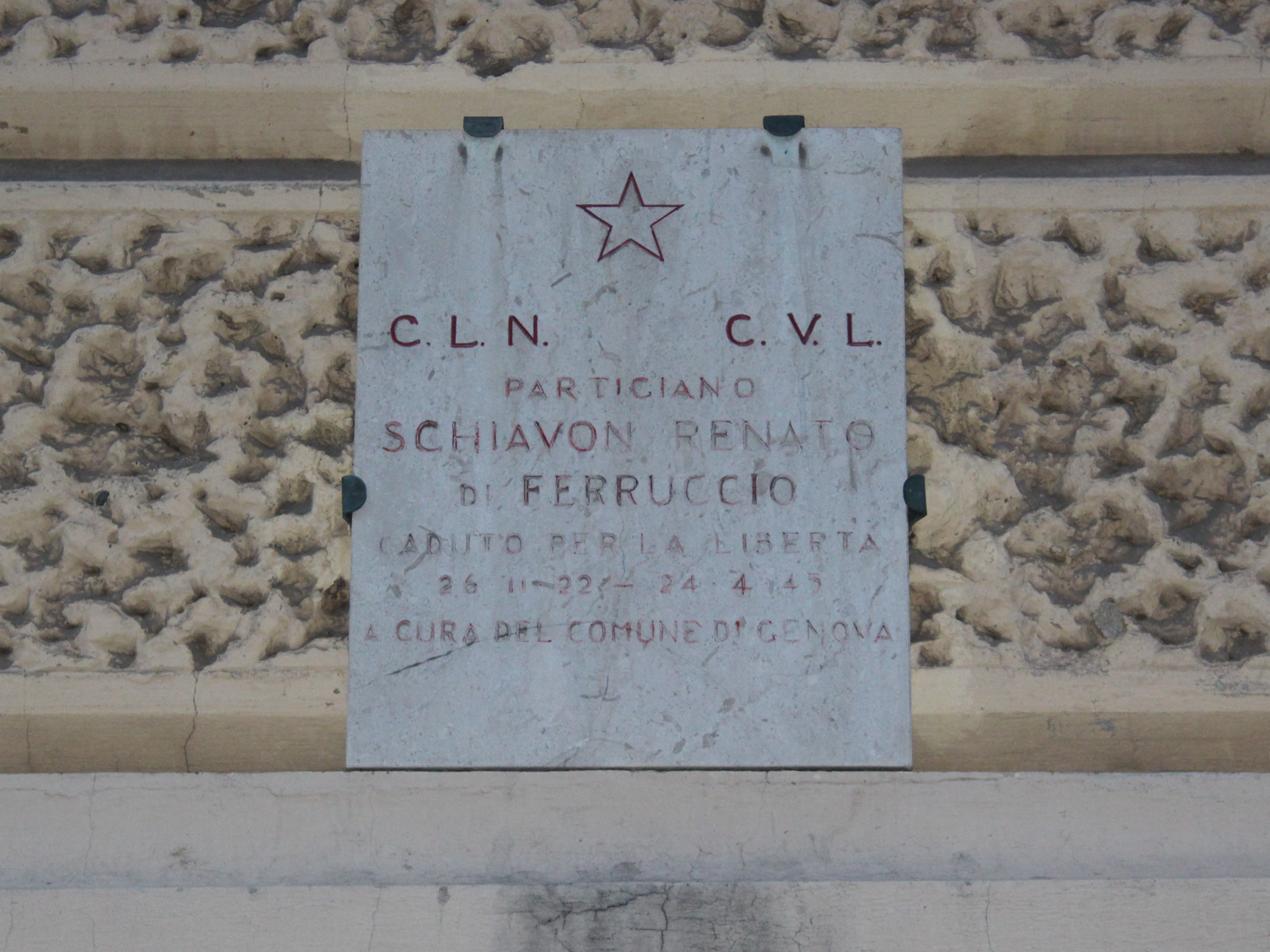 c.l.n. ★ c.v.l. partigiano SCHIAVON RENATO di ferruccio caduto per la libertà 26.11.22 – 24.4.1945 a cura del comune di genova