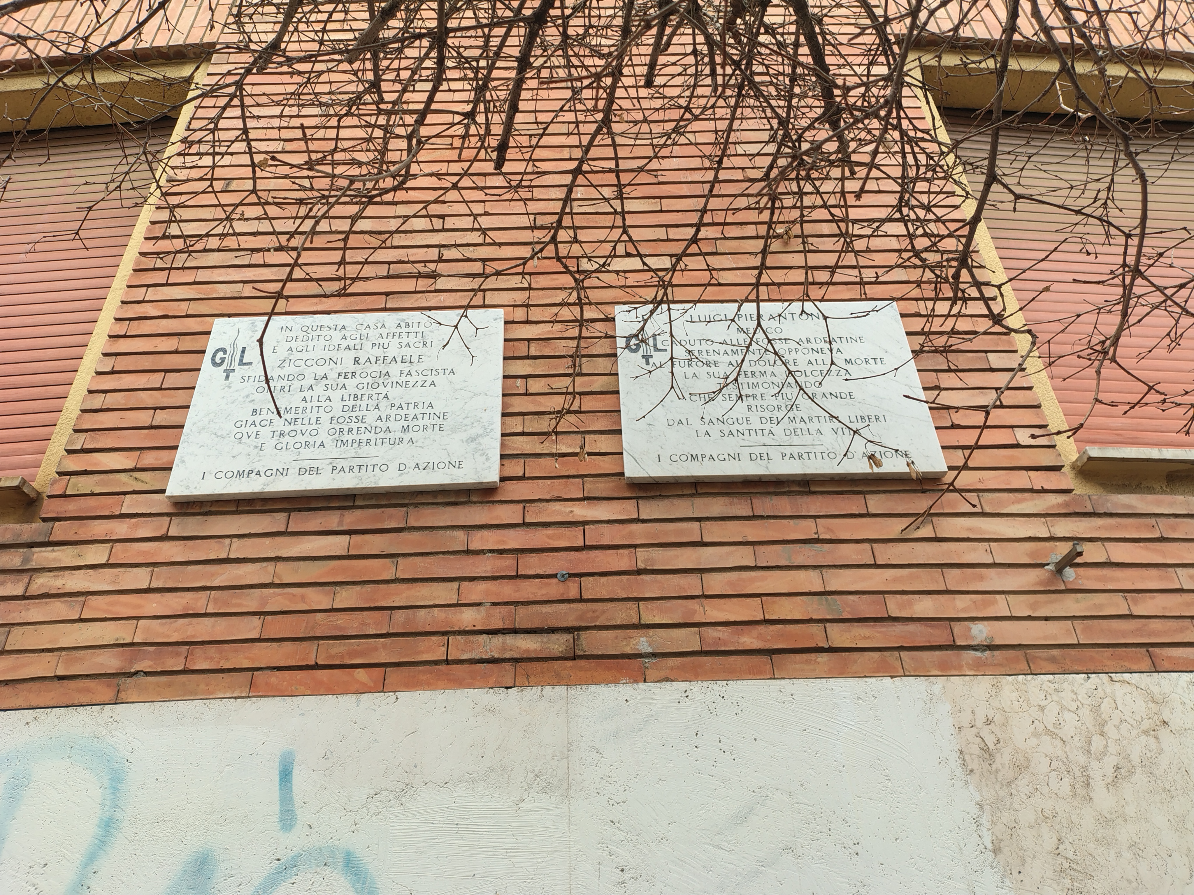 Lapide ai caduti partigiani di Bari Bari (BA) Monumento ai martiri delle Fosse Ardeatine Terlizzi (BA) Lapide alle Medaglie d'Oro di Reggio Emilia Reggio nell'Emilia (RE) Lapide a Fenulli Reggio nell'Emilia (RE) Targa a Fabrini Zagarolo (RM) Dedica a Butera Riesi (CL) Lapide a Camisotti e Tasca Monza (MB) Cippo ai caduti Brusnengo (BI) Lapide ai caduti Brusnengo (BI) Lapide a Haipel e Pepicelli Roma (RM) Lapide ad Agnini Roma (RM) Lapidi di Subiaco Subiaco (RM) Lapide a Imperiali Palombara Sabina (RM) Lapide a Fantacone Roma (RM) Targa a Villoresi Roma (RM) Lapide a Barbieri Roma (RM) Lapide ai 14 martiri di Monte Sacro Roma (RM) Pietre d'inciampo alle famiglie Di Consiglio-Vivanti e Spizzichino-Anav Roma (RM) Lapide a Mancini Roma (RM) Lapide a Chiesa Roma (RM) Laide a Bordoni e Salemme Roma (RM) Lapide a Govoni Ferrara (FE) Lapide dei caduti della cooperativa Termini Roma (RM) Lapide ai caduti del Partito d'Azione Roma (RM) Monumento alle Medaglie al valor militare Livorno (LI) Lapide a Gelsomini Roma (RM) Lapide a Perpetua Roma (RM) Pietre d'inciampo a Di Porto e Caviglia Roma (RM) Mausoleo delle Fosse Ardeatine Roma (RM) Fosse Ardeatine Roma (RM) Lapidi del Mausoleo delle Fosse Ardeatine Roma (RM) Murale a Mancini Roma (RM) Lapide a Jaforte Roma (RM) Lapide a Fiorentini Roma (RM) Lapide della sinagoga Roma (RM) Pietra d'inciampo a Duranti Roma (RM) Lapide a Ottaviano Roma (RM) Lapide a Stame Roma (RM) Lapide ai caduti del liceo Galvani Bologna (BO) Lapide a Lo Presti Roma (RM) Lapide a Bucciano Roma (RM) Lapide a Fano Roma (RM) Lapide ai martiri dell'8° zona Roma (RM) Lapide a Stame Roma (RM) Lapide a Avolio Roma (RM) Lapide a Simoni Roma (RM) Monumento ai caduti per la libertà di Centocelle Roma (RM) Lapide ai caduti per la libertà di Centocelle Roma (RM) Lapide ai caduti dell'Atac nella Guerra di Liberazione Roma (RM) Targa ad Agnini Roma (RM) Lapide ai caduti per la Libertà di Tor Pignattara Roma (RM) Pietre d'inciampo per gli operai del mobilificio Roma (RM) Lapide ad Astrologo Roma (RM) Lapide ai partigiani ebrei Roma (RM) Lapide a Casadei e Fantini Roma (RM) Lapide ai postelegrafonici caduti per la Libertà Roma (RM) Lapide a Pisino Roma (RM) Lapide ai rastrellati di via Rasella Roma (RM) Lapide a Fontana Roma (RM) Sacrario dei caduti per la Libertà di Mirandola Mirandola (MO) Lapide a Gelsomini Roma (RM) Lapide a Giglio Roma (RM) Pietra d'inciampo a Giglio Roma (RM) Lapide a Bernabei Montepulciano (SI) Pietra d'inciampo a Orlandi Posti Roma (RM) Lapide a Giustiniani e Pitrelli Roma (RM) Pietre d'inciampo alle famiglie Di Consiglio, Di Tivoli, Di Castro e Moscato Roma (RM) Lapide ad Azzarita Venezia (VE) Lapide a Zaccagnini Roma (RM) Pietre d'inciampo alla famiglia Sermoneta - Zarfati e a Zaccagnini Roma (RM) Lapide a Grani Roma (RM) Lapide a Galafati Roma (RM) Lapide ai caduti dei rioni Ponte, Parione, Regola e Campitelli Roma (RM) Lapide ai partigiani di Trastevere Roma (RM) Lapidi ai Partigiani Copparesi Caduti Copparo (FE) Lapidi ai Caduti di Tamara Copparo (FE) Fontana Monumentale Copparo (FE) Lapide a Celani Roma (RM) Lapide a Micheli Roma (RM) Lapide a Pappagallo Roma (RM) Pietra d'inciampo a Petrucci Roma (RM) Lapide ai caduti per la Libertà della Valle Sturla Genova (GE) Targa a Canacci Roma (RM) Lapide a Troiani Roma (RM) Lapide a Medas Narbolia (OR) Monumento a Cocco Sedilo (OR) Pietra d'inciampo a Govoni Roma (RM)