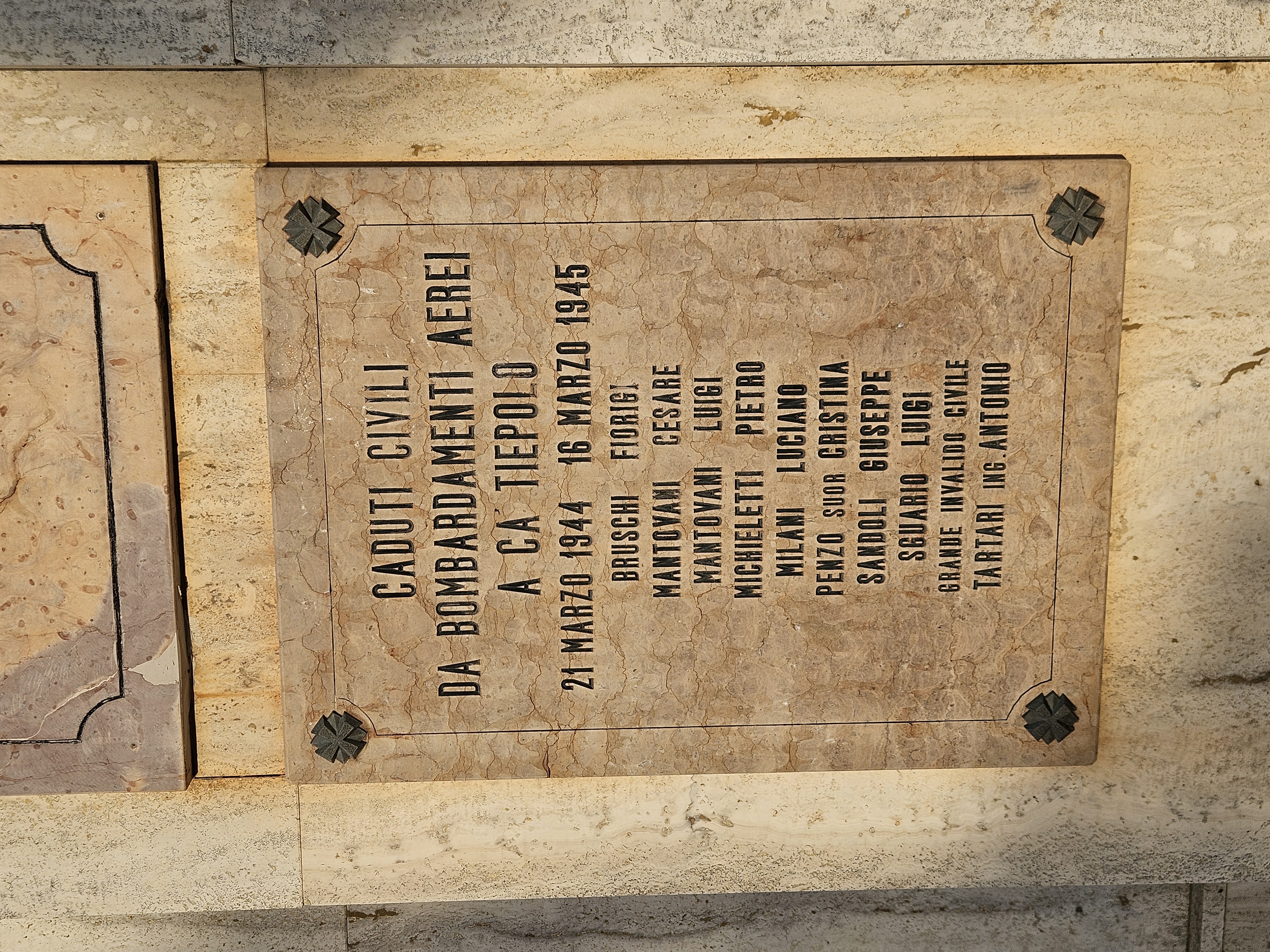 Monumento a Bernardini 9Km — Mesola (FE) Sacrario dei Partigiani 11.2Km — Mesola (FE) Monumento ai Martiri della Macchinina 12.9Km — Goro (FE) Monumento a Mantovani e Fabbri 13Km — Mesola (FE) Lapide ai Caduti nella lotta di Liberazione 13.6Km — Porto Viro (RO) Lapide a Pivari, Bonamico e Bonaccorsi 17.1Km — Mesola (FE) Lapide a Luisari 17.1Km — Mesola (FE) Monumento alle Vittime militari e civili 21.2Km — Corbola (RO) Lapide a Crivellari 21.3Km — Adria (RO) Lapide a Bizzarro 21.3Km — Adria (RO)
