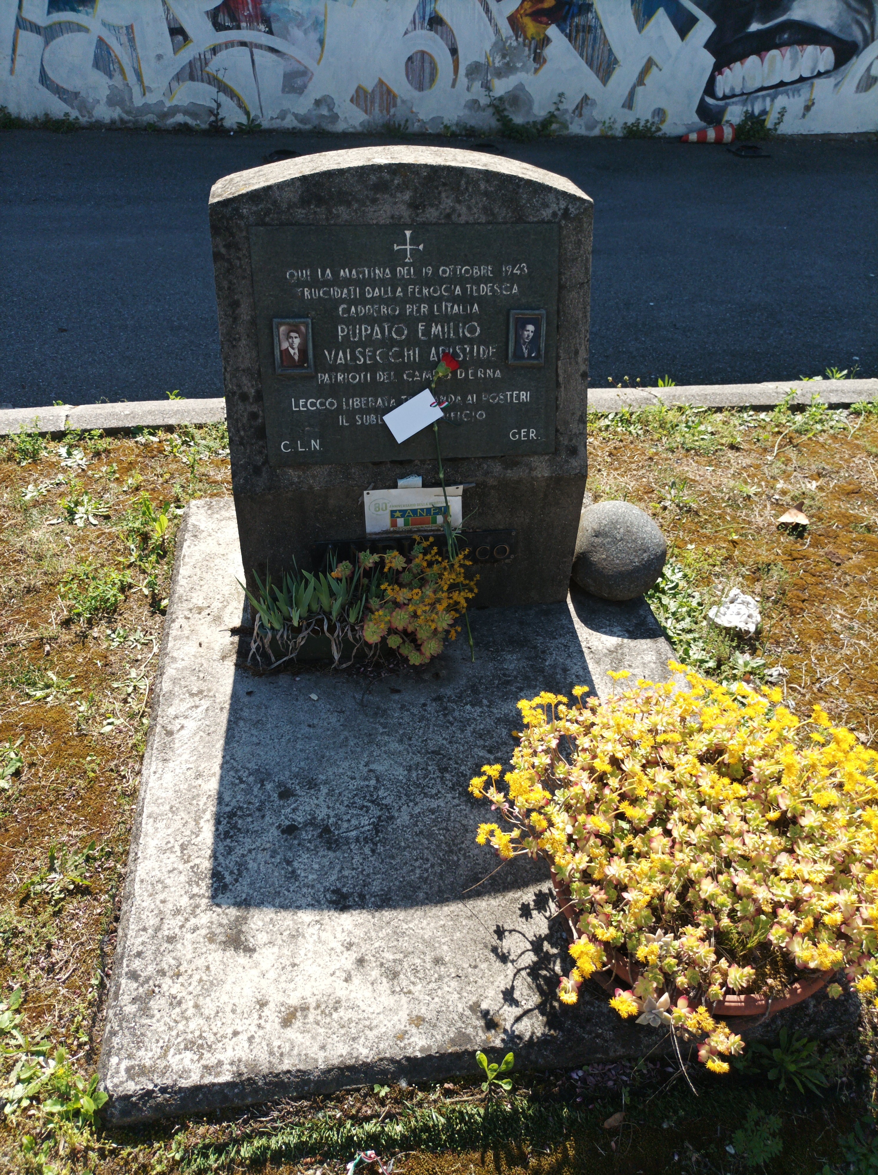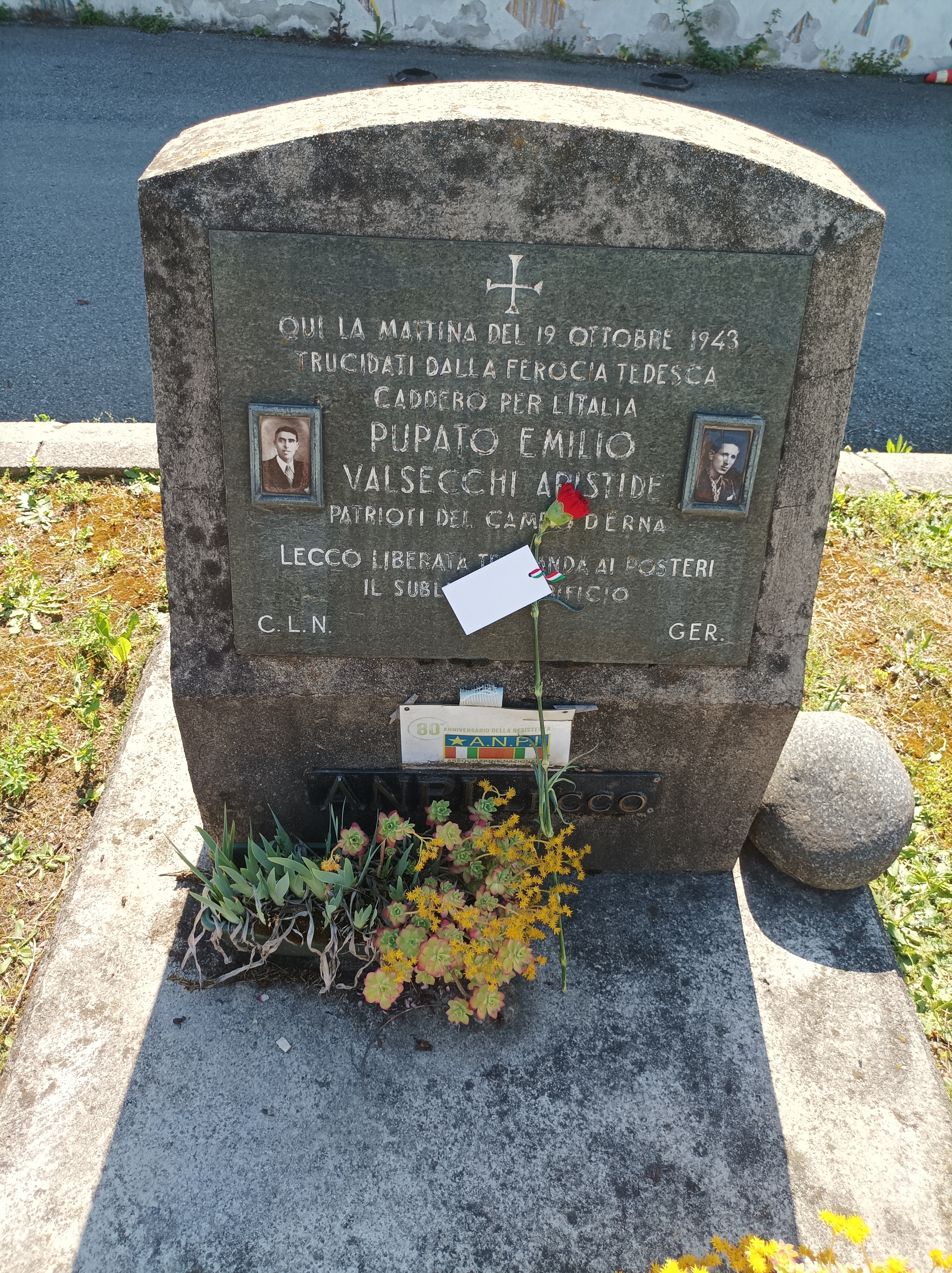 qui la mattina del 19 ottobre 1943 trucidati dalla feroceia tedesca caddero per l'italia PUPATO EMILIO VALSECCHI ARISTIDE patrioti del campo derna lecco liberata tramanda ai posteri il sublime sacrificio c.l.n. ger. anpi lecco
