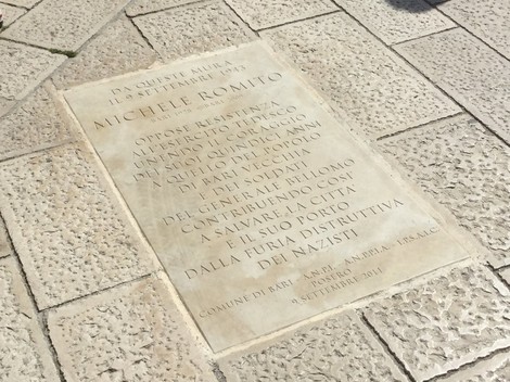 Lapide alla resistenza della Camera del Lavoro di Bari Vecchia 75m — Bari (BA) Lapide alla resistenza al Porto Grande 280m — Bari (BA) Lapide ai caduti del Porto Grande 290m — Bari (BA) Lapide a Di Vittorio 420m — Bari (BA) Lapide ai caduti partigiani di Bari 570m — Bari (BA) Lapide per il primo congresso dei Comitati di Liberazione Nazionale 580m — Bari (BA) Targa per D'Agostino 590m — Bari (BA) Lapide a Zannini 1Km — Bari (BA) Pietra di inciampo per Radio Bari 1.1Km — Bari (BA) Lapide alla resistenza dei postelegrafonici 1.1Km — Bari (BA)