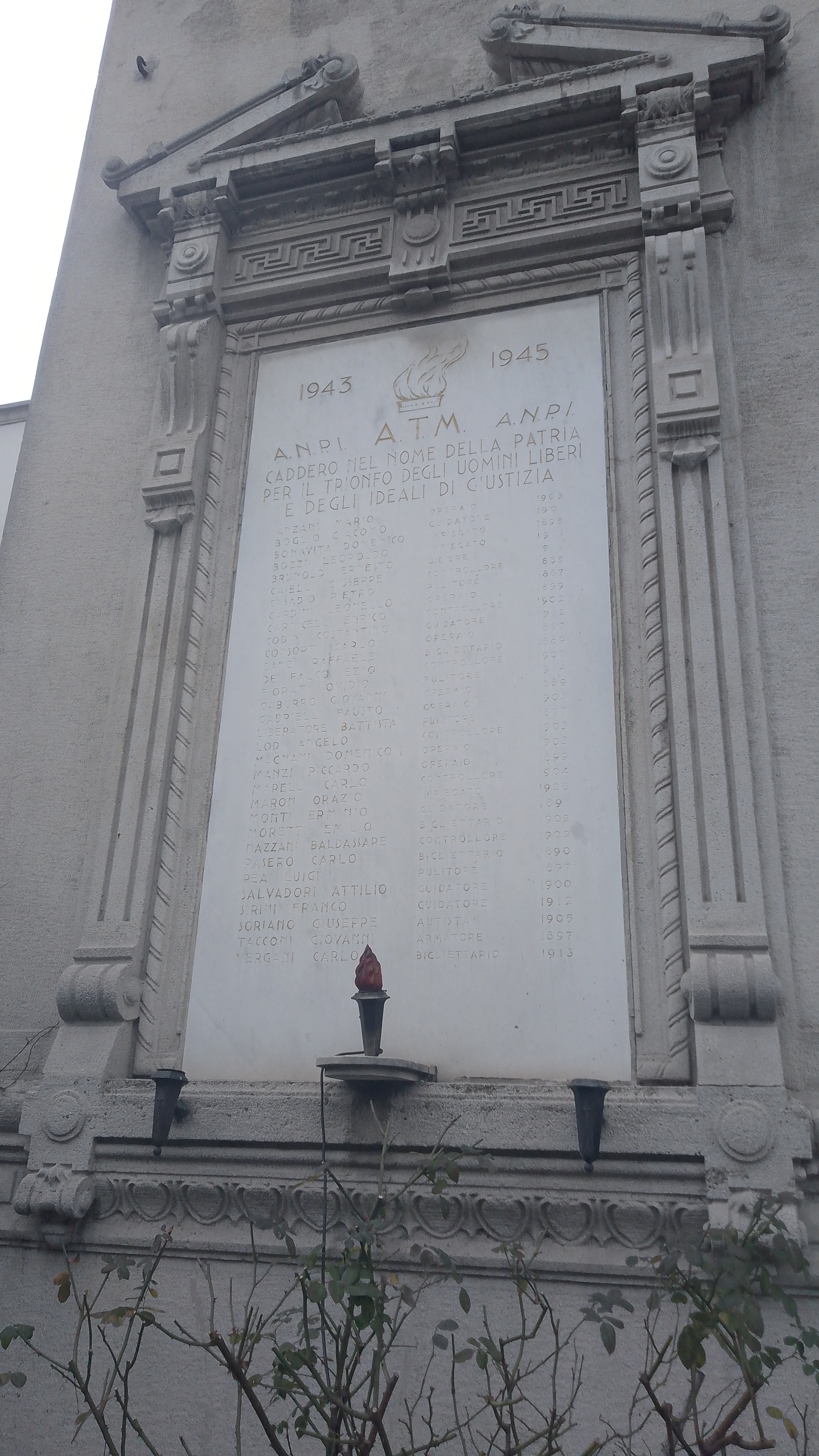 Lapide tranvieri ATM morti per la Libertà