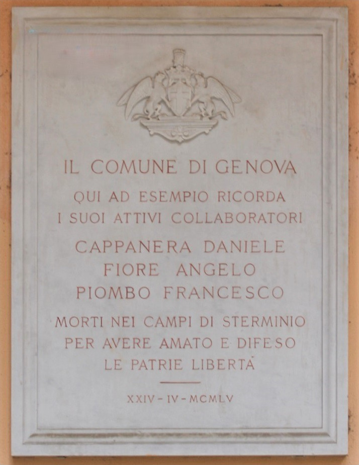 Lapide dell'atto di resa tedesca 15m — Genova (GE) Lapidi agli internati e ai deportati 15m — Genova (GE) Lapide ai caduti partigiani di Castelletto 350m — Genova (GE) Lapide ai caduti per la Libertà di Prè 400m — Genova (GE) Pietra d'inciampo a De Benedetti 400m — Genova (GE) Pietra d'inciampo a Pacifici 400m — Genova (GE) Lapide a Lanfranconi 430m — Genova (GE) Targa a Bolis 460m — Genova (GE) Lapide per la resa tedesca 470m — Genova (GE) Monumento ai combattenti alleati 470m — Genova (GE)