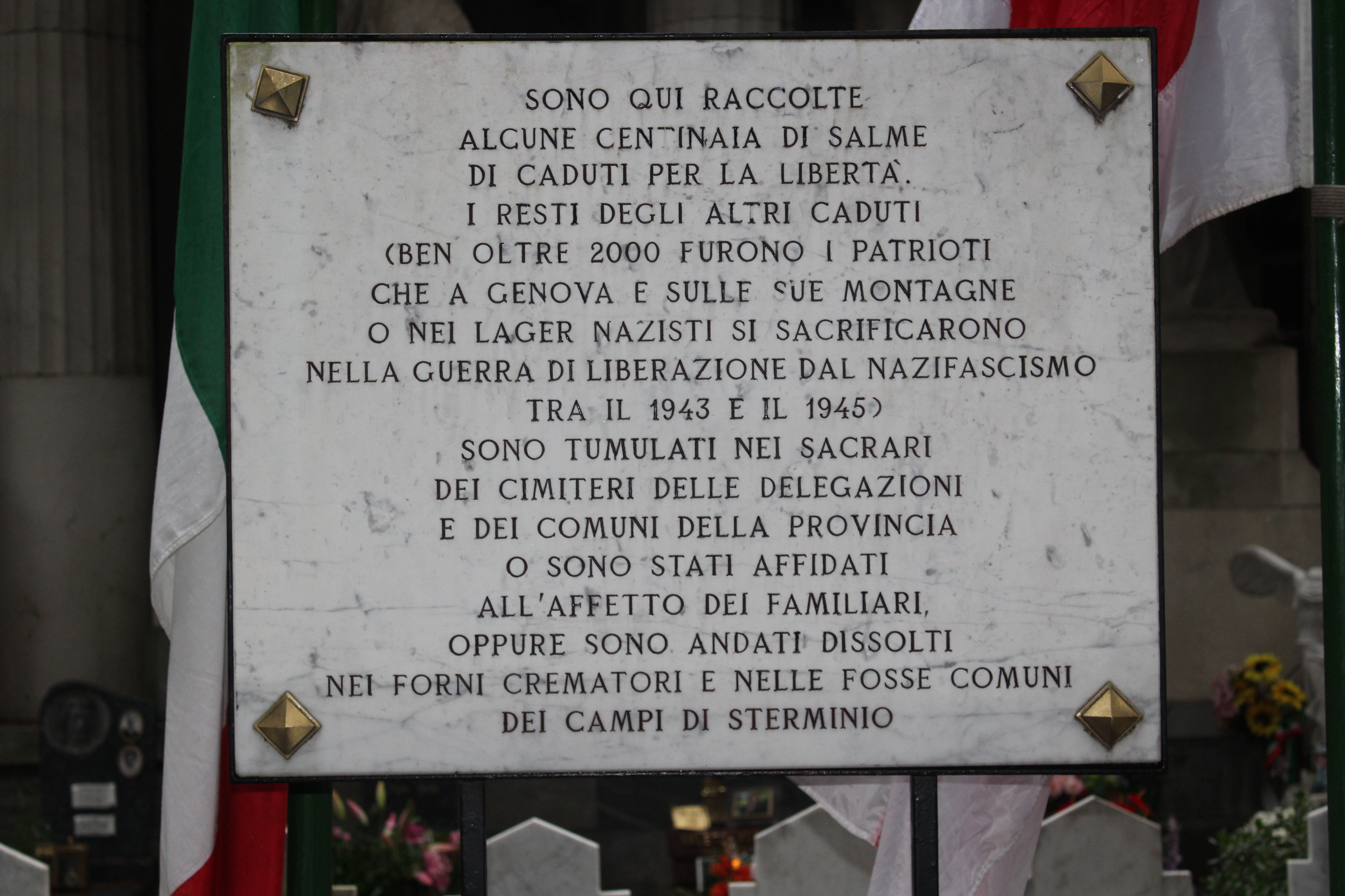 Monumento ai caduti per la Libertà di Staglieno Genova (GE) Sacrario del Ponte Monumentale Genova (GE) Lapide ai caduti per la Libertà di Marassi Genova (GE) -
