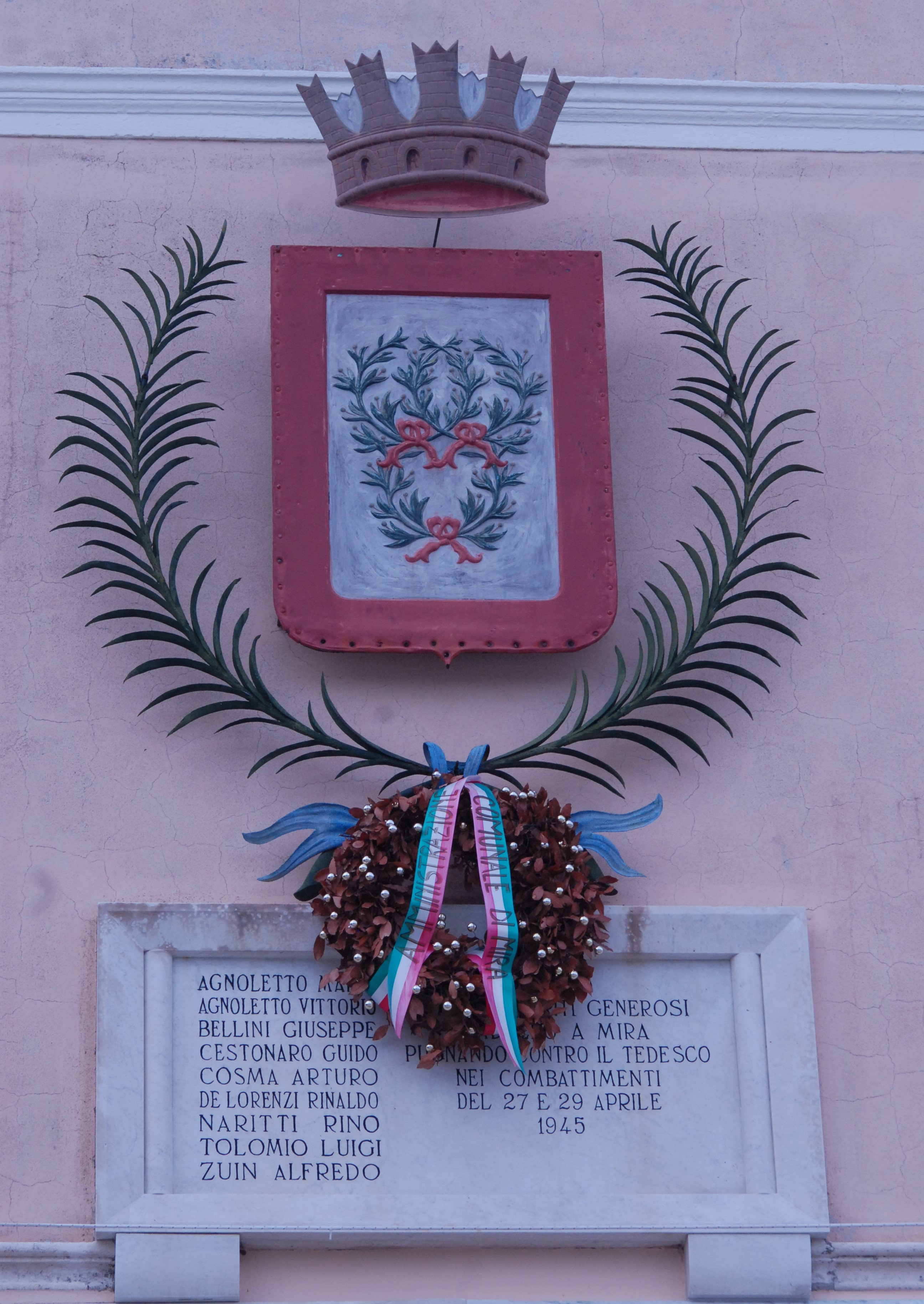 Parco delle Rimembranze 530m — Mira (VE) Monumento ai Partigiani caduti all'Olmo 3.7Km — Mira (VE) Monumento a Isepetto 5.7Km — Mira (VE) Lapide alle vittime di bombardamenti 6.4Km — Venezia (VE) Lapide ai fratelli Parmesan 9Km — Venezia (VE) Monumento ai ferrovieri caduti 9Km — Venezia (VE) Lapide per le vittime dei bombardamenti 9.1Km — Venezia (VE) Lapide per la medaglia d'oro alla Guardia di finanza 10.1Km — Venezia (VE) Pietra d'inciampo a Mognato 10.1Km — Venezia (VE) Sacrario per le vittime del bombardamento 10.5Km — Venezia (VE)