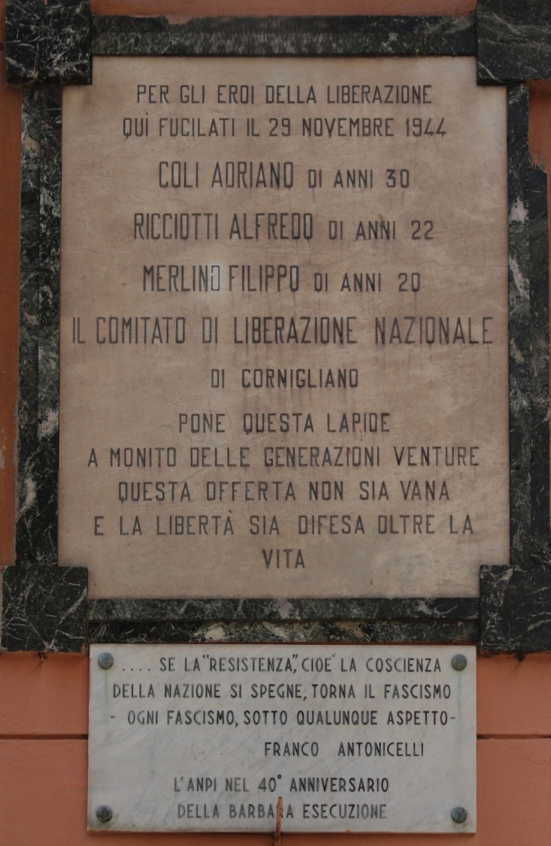 Lapidi a Coli, Ricciotti e Merlino