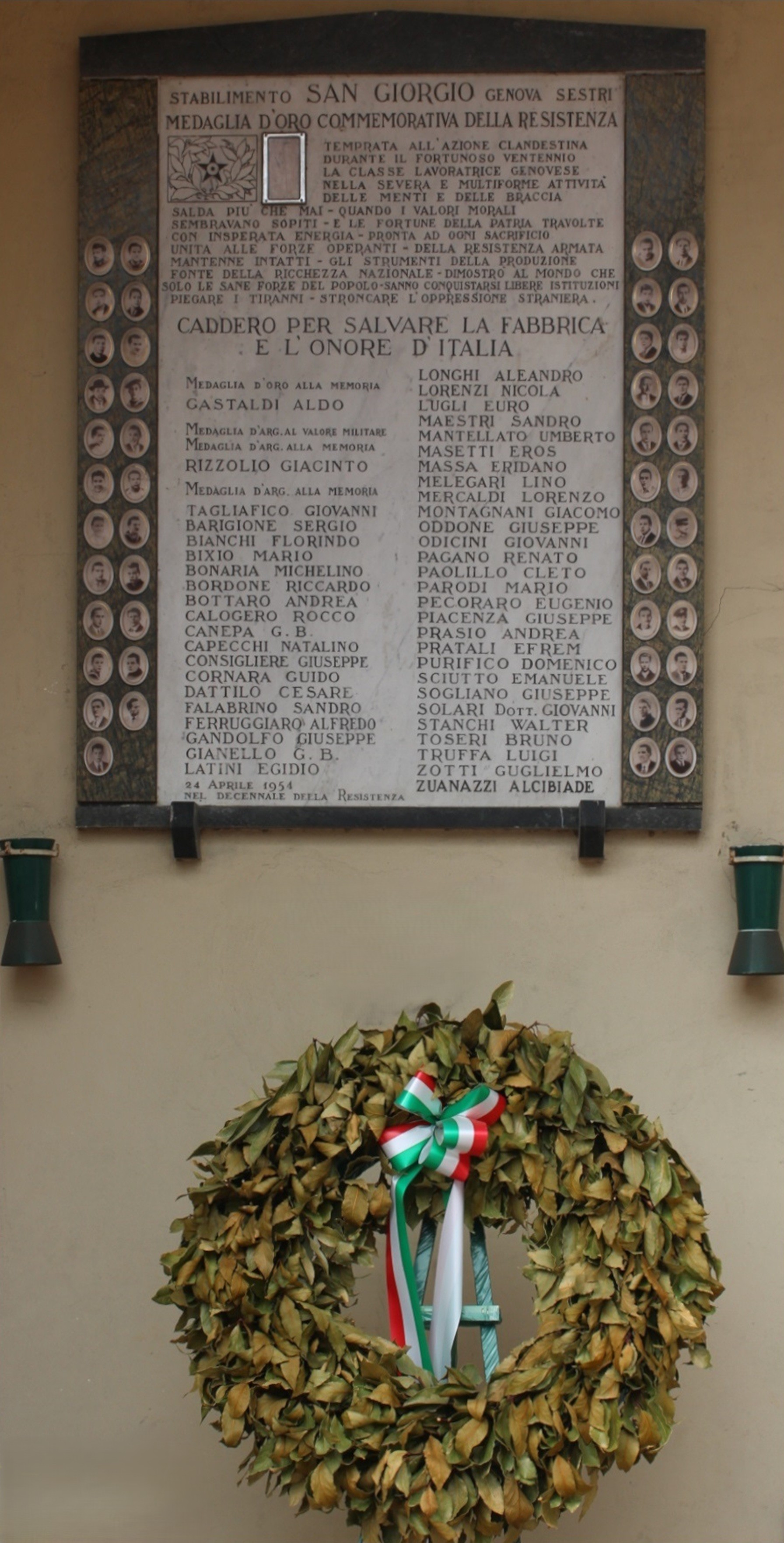 Lapide ai caduti per la Libertà di Sampierdarena Genova (GE) Lapide a Malinverni Genova (GE) Lapidi ai caduti dell'Ansaldo Meccanico Genova (GE) Lapide ai caduti per la Libertà Sampierdarenesi Genova (GE) Sacrario dei Partigiani di Sampierdarena Genova (GE) Lapide ai caduti per la Libertà dell'istituto Galilei Genova (GE) Sacrario del Ponte Monumentale Genova (GE) Monumento ai caduti per la Libertà di Rivarolo Genova (GE) Lapide a Buranello, Fillak e Quartini Genova (GE) Tombe perpetue dei caduti per la Libertà Genova (GE) Monumento ai caduti di Cornigliano Genova (GE) Lapidi ai caduti per la Libertà di Cornigliano Genova (GE)