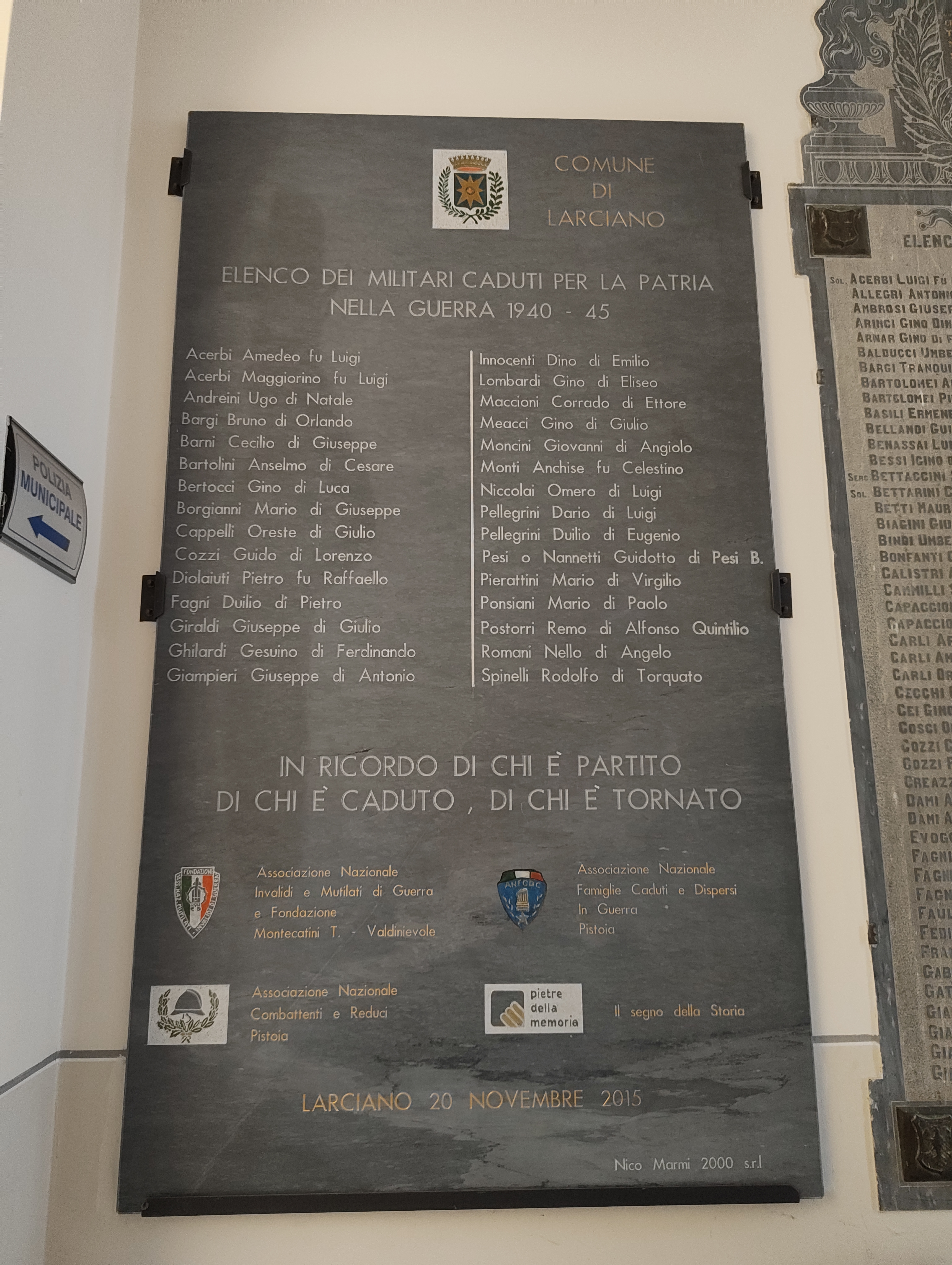 Pietre d'inciampo a Molho e Mordo 5m — Larciano (PT) Lapide dell'ottantesimo 1.7Km — Lamporecchio (PT) Lapide per il decennale 1.7Km — Lamporecchio (PT) Lapide alle vittime dei lager di Lamporecchio 1.8Km — Lamporecchio (PT) Cippo a Monti e Dami 2Km — Larciano (PT) Targa a Tamburini 2.1Km — Lamporecchio (PT) Sacrario delle vittime dell'eccidio del padule di Fucecchio 3Km — Larciano (PT) Giardino della Memoria 3.1Km — Larciano (PT) Monumento dell'eccidio del Padule di Fucecchio 3.1Km — Larciano (PT) Cippo a Bettaccini e Brittoli 3.6Km — Larciano (PT)