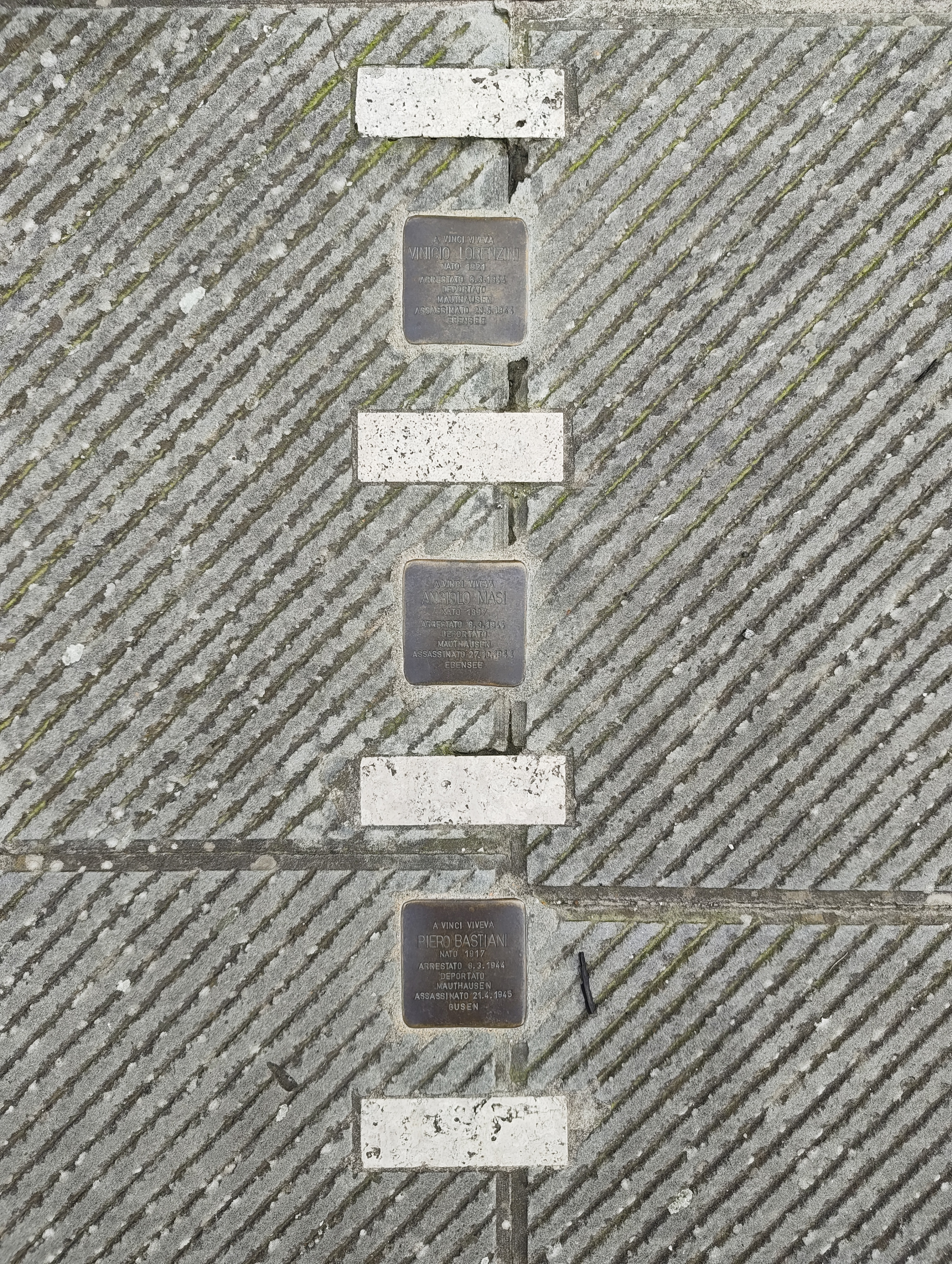 Lapide per la Liberazione 10m — Vinci (FI) Lapide ai deportati 120m — Vinci (FI) Monumento ai deportati 270m — Vinci (FI) Lapide di Santa Lucia 2.3Km — Vinci (FI) Lapide alle vittime dei lager di Lamporecchio 4Km — Lamporecchio (PT) Lapide per il decennale 4.1Km — Lamporecchio (PT) Lapide dell'ottantesimo 4.1Km — Lamporecchio (PT) Lapide per la Liberazione 4.9Km — Cerreto Guidi (FI) Targa a Tamburini 5.2Km — Lamporecchio (PT) Pietra d'inciampo a Lucarelli 5.3Km — Cerreto Guidi (FI)