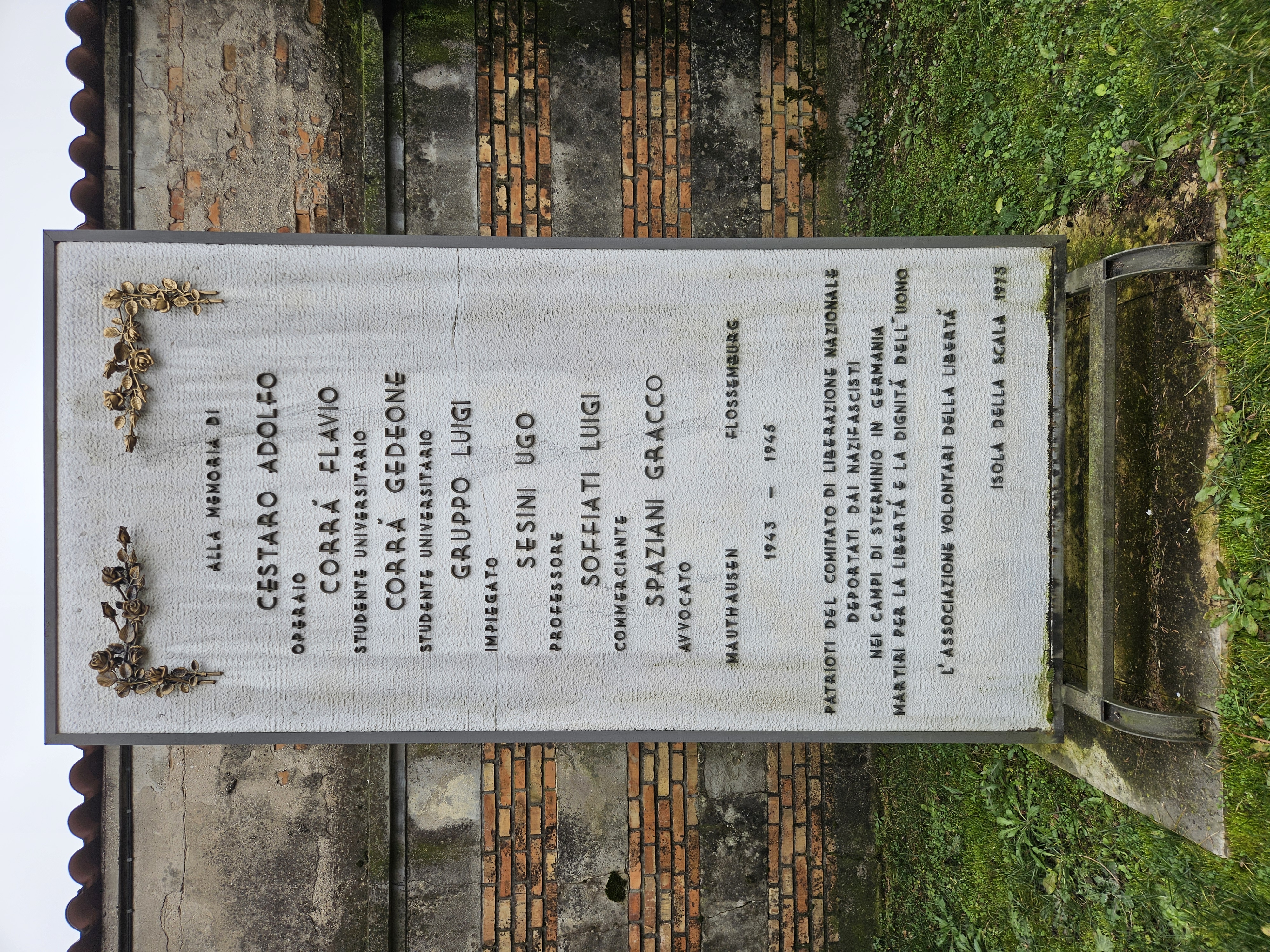 Lapide ai Caduti della guerra 1940-45 45m — Isola della Scala (VR) Lapide per il bombardamento del 28 gennaio 1944 50m — Isola della Scala (VR) Monumento ai Caduti 440m — Isola della Scala (VR) Pietra d'inciampo a Sesini 5.9Km — Trevenzuolo (VR) Lapide per il carcere nazista 19.8Km — Verona (VR) Monumento agli Internati mantovani 20.5Km — Mantova (MN) Lapide al Comitato di Liberazione Nazionale 20.5Km — Mantova (MN) Lapide al Trentesimo della Liberazione 23.4Km — Valeggio sul Mincio (VR) Cippo a Smerieri 26.7Km — Borgo Mantovano (MN) Lapide a Guizzon 27.7Km — Rodigo (MN)