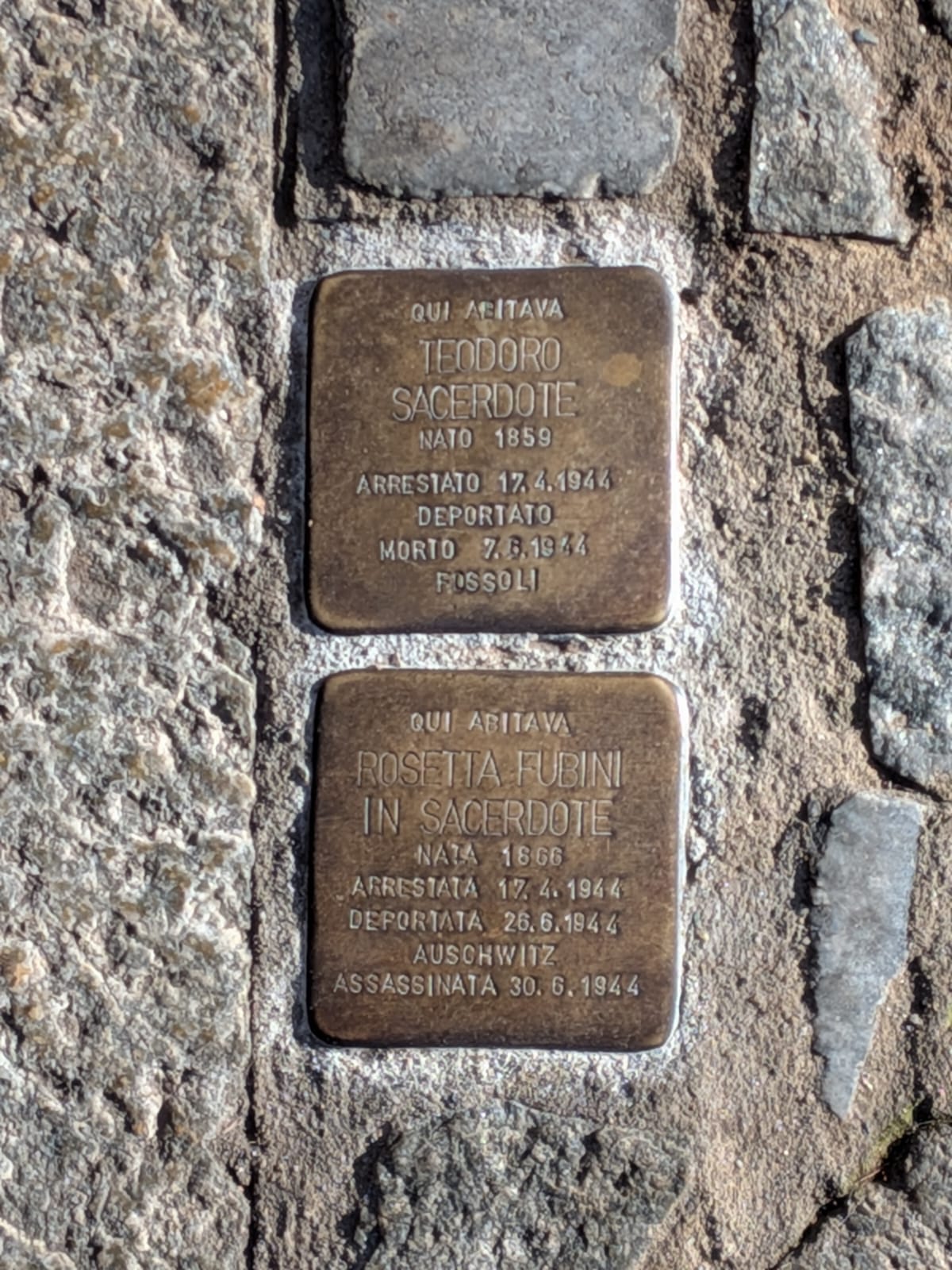 Pietra d'inciampo a Fubini e Sacerdote