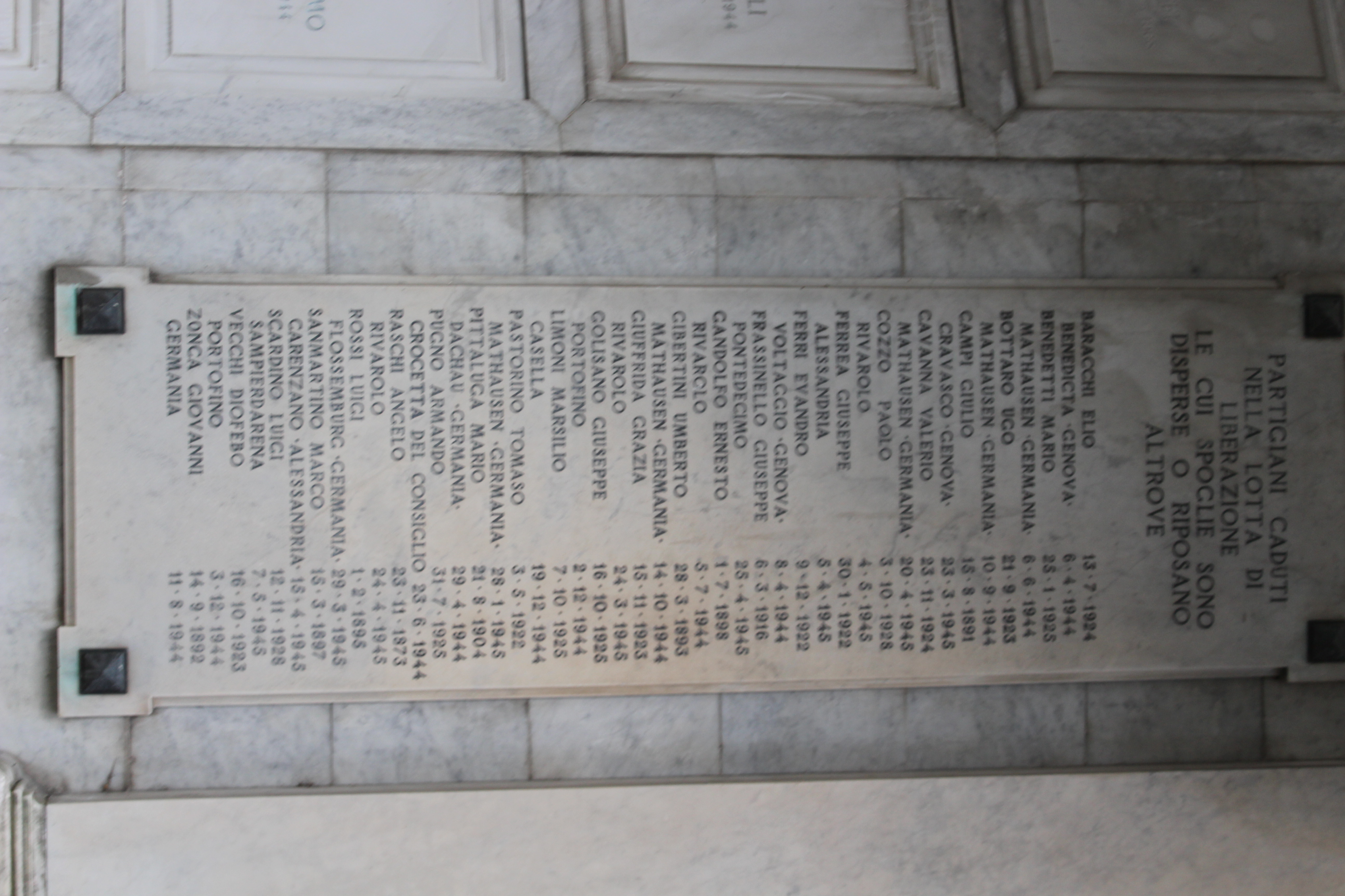 Lapide ai caduti partigiani Montignoso (MS) Sacrario del Ponte Monumentale Genova (GE) Lapide ai caduti per la Libertà di Trasta Genova (GE) Monumento ai caduti per la Libertà di Rivarolo Genova (GE) -