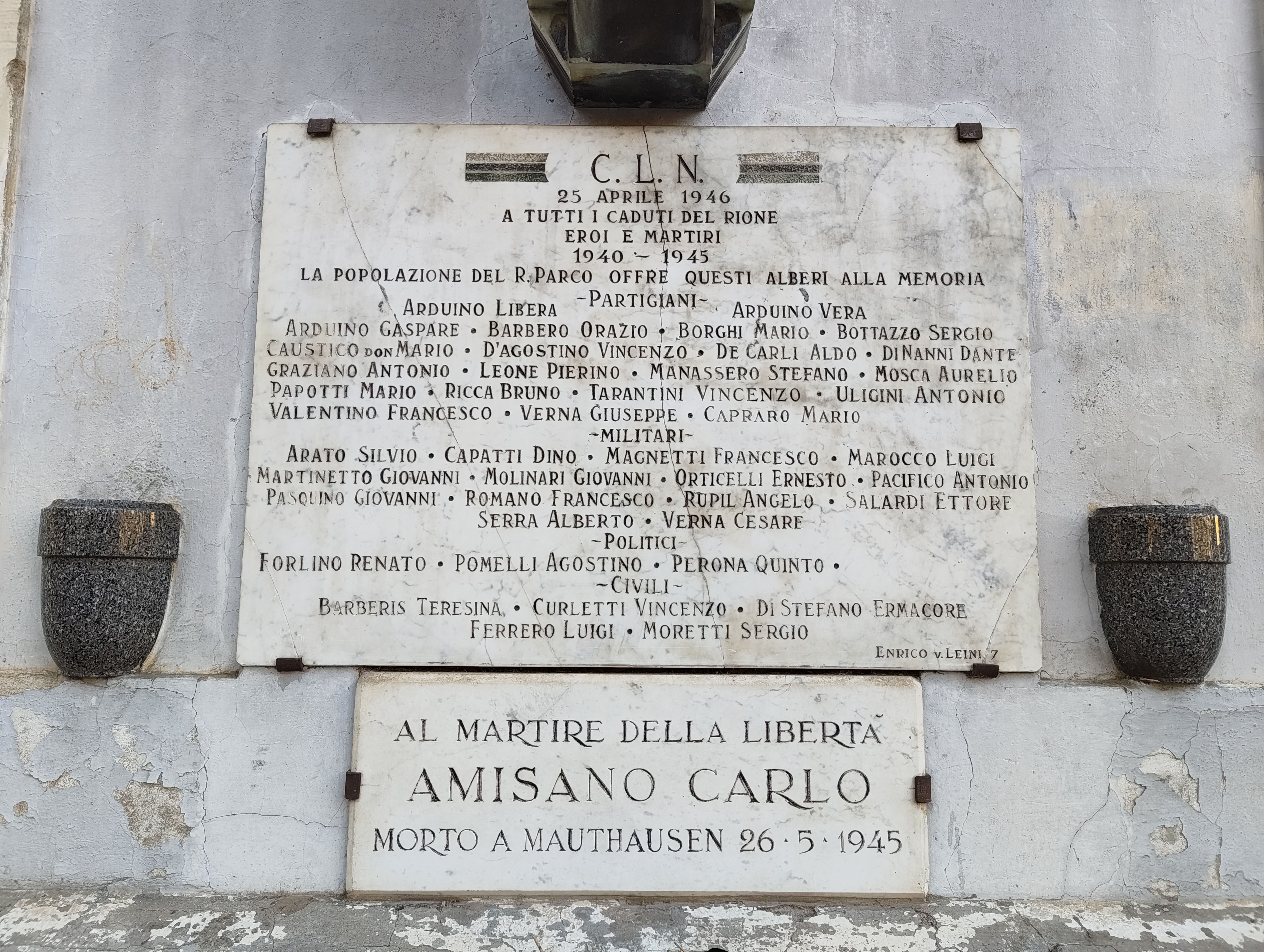 Cippo a Vian Torino (TO) Lapide ai caduti di San Giusto San Giusto Canavese (TO) Stele a Bena, Briccarello, Valentino e Vian Torino (TO) Pannelli agli imprigionati nel carcere Le Nuove Torino (TO) -