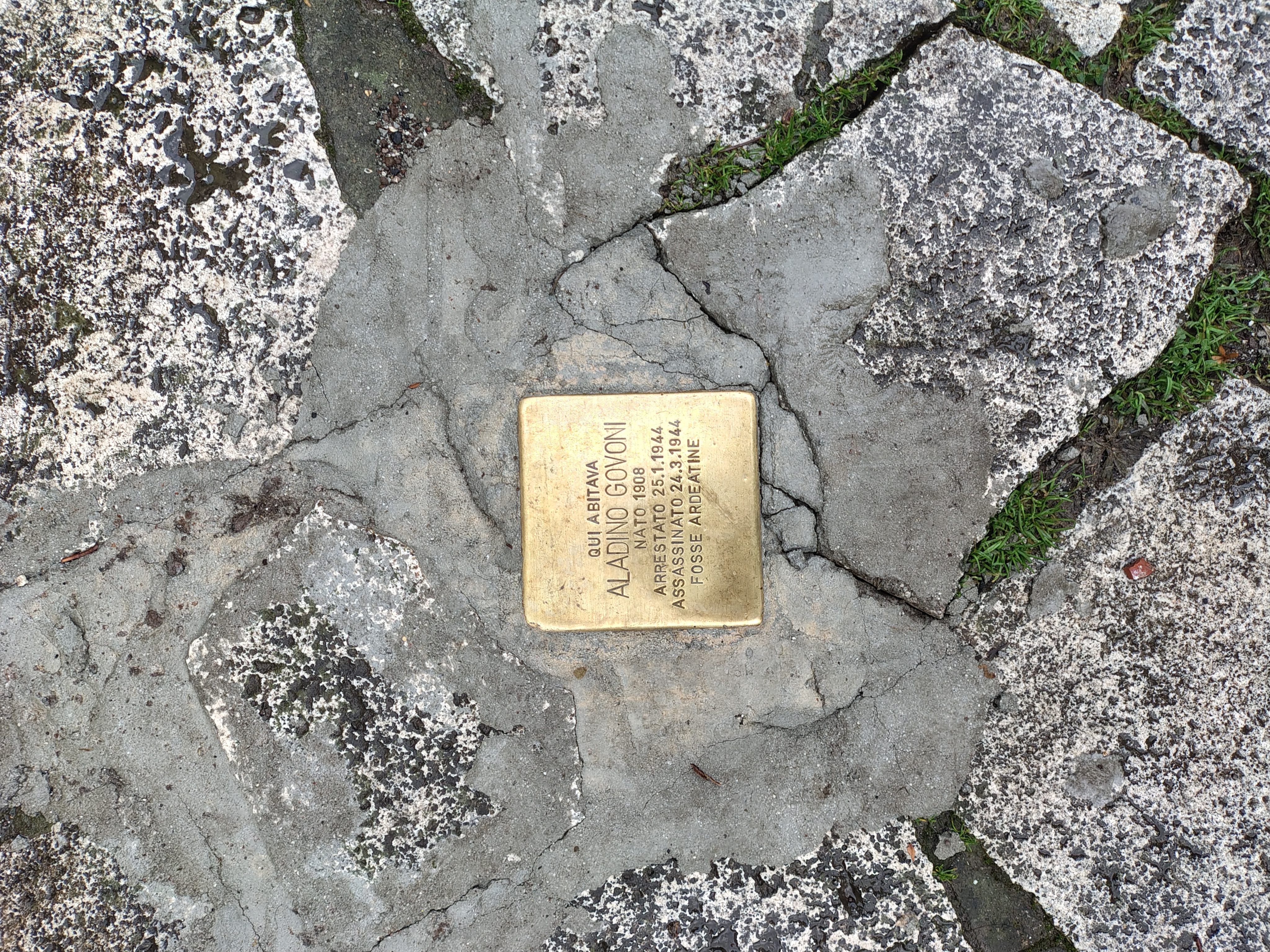 Lapide ai caduti partigiani di Bari Bari (BA) Monumento ai martiri delle Fosse Ardeatine Terlizzi (BA) Lapide alle Medaglie d'Oro di Reggio Emilia Reggio nell'Emilia (RE) Lapide a Fenulli Reggio nell'Emilia (RE) Targa a Fabrini Zagarolo (RM) Dedica a Butera Riesi (CL) Lapide a Camisotti e Tasca Monza (MB) Cippo ai caduti Brusnengo (BI) Lapide ai caduti Brusnengo (BI) Lapide a Haipel e Pepicelli Roma (RM) Lapide ad Agnini Roma (RM) Lapidi di Subiaco Subiaco (RM) Lapide a Imperiali Palombara Sabina (RM) Lapide a Fantacone Roma (RM) Targa a Villoresi Roma (RM) Lapide a Barbieri Roma (RM) Lapide ai 14 martiri di Monte Sacro Roma (RM) Pietre d'inciampo alle famiglie Di Consiglio-Vivanti e Spizzichino-Anav Roma (RM) Lapide a Mancini Roma (RM) Lapide a Chiesa Roma (RM) Laide a Bordoni e Salemme Roma (RM) Lapide a Govoni Ferrara (FE) Lapide dei caduti della cooperativa Termini Roma (RM) Lapide ai caduti del Partito d'Azione Roma (RM) Monumento alle Medaglie al valor militare Livorno (LI) Lapide a Gelsomini Roma (RM) Lapide a Perpetua Roma (RM) Pietre d'inciampo a Di Porto e Caviglia Roma (RM) Mausoleo delle Fosse Ardeatine Roma (RM) Fosse Ardeatine Roma (RM) Lapidi del Mausoleo delle Fosse Ardeatine Roma (RM) Murale a Mancini Roma (RM) Lapide a Jaforte Roma (RM) Lapide a Fiorentini Roma (RM) Lapide della sinagoga Roma (RM) Pietra d'inciampo a Duranti Roma (RM) Lapide a Ottaviano Roma (RM) Lapide a Stame Roma (RM) Lapide ai caduti del liceo Galvani Bologna (BO) Lapide a Lo Presti Roma (RM) Lapide a Bucciano Roma (RM) Lapide a Fano Roma (RM) Lapide ai martiri dell'8° zona Roma (RM) Lapide a Stame Roma (RM) Lapide a Avolio Roma (RM) Lapide a Simoni Roma (RM) Monumento ai caduti per la libertà di Centocelle Roma (RM) Lapide ai caduti per la libertà di Centocelle Roma (RM) Lapide ai caduti dell'Atac nella Guerra di Liberazione Roma (RM) Targa ad Agnini Roma (RM) Lapide ai caduti per la Libertà di Tor Pignattara Roma (RM) Pietre d'inciampo per gli operai del mobilificio Roma (RM) Lapide ad Astrologo Roma (RM) Lapide ai partigiani ebrei Roma (RM) Lapide a Casadei e Fantini Roma (RM) Lapide ai postelegrafonici caduti per la Libertà Roma (RM) Lapide a Pisino Roma (RM) Lapide ai rastrellati di via Rasella Roma (RM) Lapide a Fontana Roma (RM) Sacrario dei caduti per la Libertà di Mirandola Mirandola (MO) Lapide a Gelsomini Roma (RM) Lapide a Giglio Roma (RM) Pietra d'inciampo a Giglio Roma (RM) Lapide a Bernabei Montepulciano (SI) Pietra d'inciampo a Orlandi Posti Roma (RM) Lapide a Giustiniani e Pitrelli Roma (RM) Pietre d'inciampo alle famiglie Di Consiglio, Di Tivoli, Di Castro e Moscato Roma (RM) Lapide ad Azzarita Venezia (VE) Lapide a Zaccagnini Roma (RM) Pietre d'inciampo alla famiglia Sermoneta - Zarfati e a Zaccagnini Roma (RM) Lapide a Grani Roma (RM) Lapide a Galafati Roma (RM) Lapide ai caduti dei rioni Ponte, Parione, Regola e Campitelli Roma (RM) Lapide ai partigiani di Trastevere Roma (RM) Lapidi ai Partigiani Copparesi Caduti Copparo (FE) Lapidi ai Caduti di Tamara Copparo (FE) Fontana Monumentale Copparo (FE) Lapide a Celani Roma (RM) Lapide a Micheli Roma (RM) Lapide a Pappagallo Roma (RM) Pietra d'inciampo a Petrucci Roma (RM) Lapide ai caduti per la Libertà della Valle Sturla Genova (GE) Targa a Canacci Roma (RM) Lapide a Troiani Roma (RM) Lapide a Medas Narbolia (OR) Monumento a Cocco Sedilo (OR)